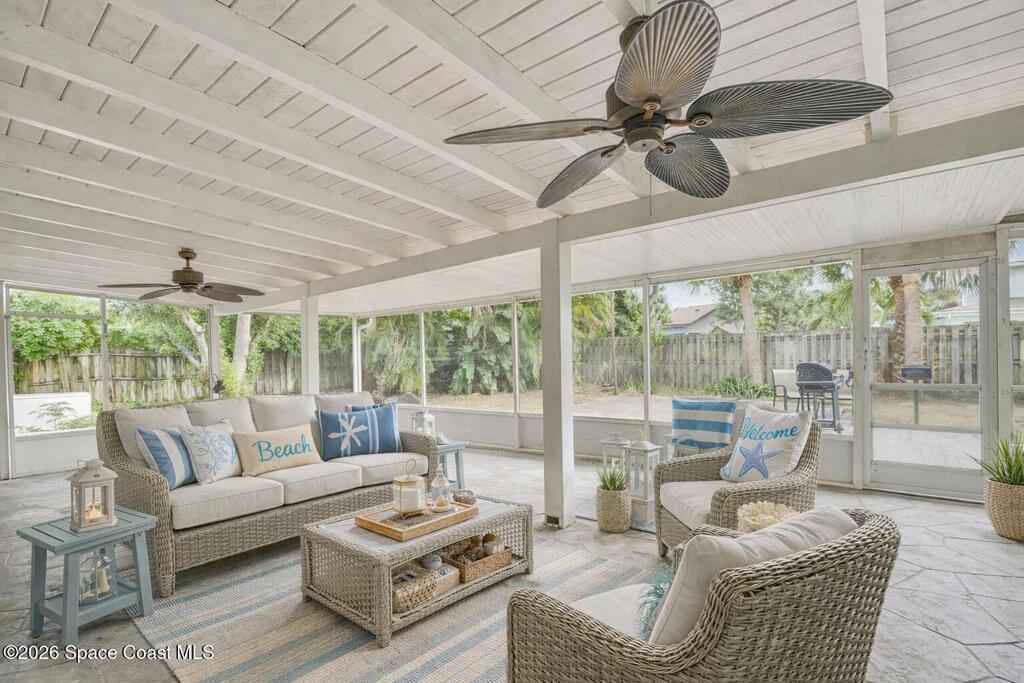 Built in 1962, this expansive residence offers 6 bedrooms, 4 bathrooms, a dedicated office, and 3,047 sq ft of living space (3,575 sq ft total). The flexible floor plan features generously sized rooms and multiple private bedrooms, making it well-suited for large households, multigenerational living, or alternative residential layouts.The property was previously operated as an assisted living residence, and its configuration may appeal to buyers seeking group-living potential. Situated on a 0.27-acre lot (11,761 sq ft), the home includes ample outdoor space, a large screened-in back porch, a fireplace, a Generac whole-home generator, and a complete fire sprinkler system throughout. Parking is available for up to 8 vehicles, including a 1-car garage, a rare feature in this area. Furniture is negotiable.Located on a quiet street in Indian Harbour Beach, approximately 0.6 miles from the ocean, and close to parks, schools, ports, and SpaceX/NASA facilities. Buyer to verify zoning.