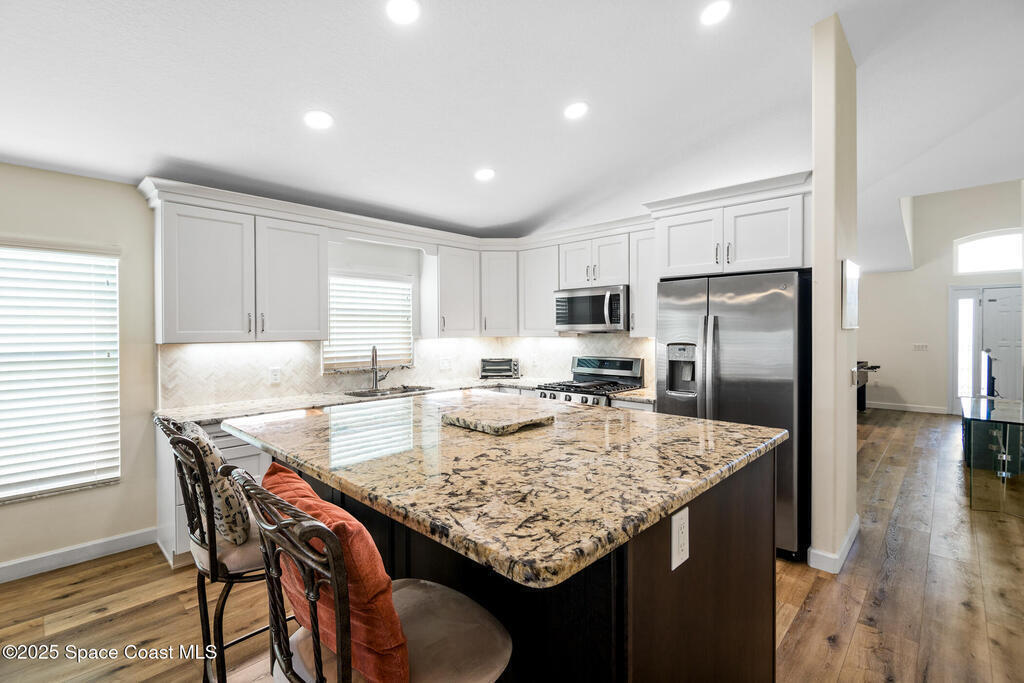 Rare opportunity to own one of the most private and beautifully updated homes in this highly coveted 55+ gated community. Perfectly positioned on a premium homesite with tranquil water views and a preserve backdrop, this exceptional residence offers over $100,000 in recent upgrades and shows like new construction.Enjoy the peaceful setting from the spacious under-truss porch and extended lanai overlooking the water, the perfect place for morning coffee, evening sunsets, or relaxed outdoor entertaining.Inside, all-new luxury vinyl plank flooring flows seamlessly throughout the entire home -- with no carpet. The fully renovated kitchen serves as the heart of the home, showcasing beautiful cabinetry with crown molding, highest-grade granite countertops, an expanded center island designed for gathering, and brand-new appliances.The owner's suite is a true retreat, featuring a customized walk-in closet and charming sitting room with serene water views. The updated ensuite offers a gra