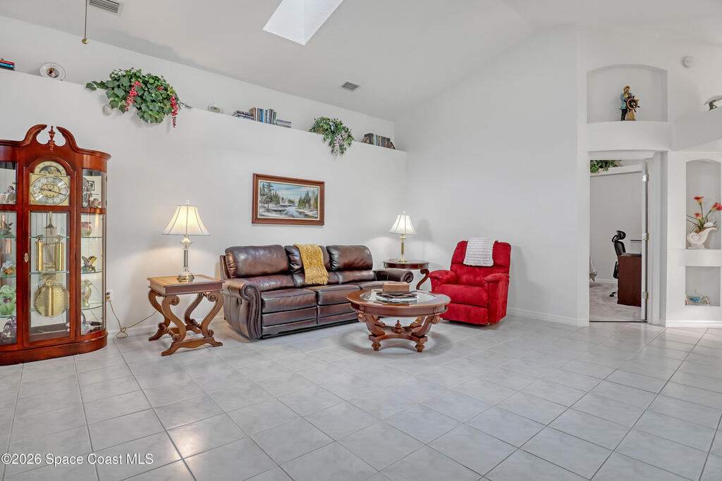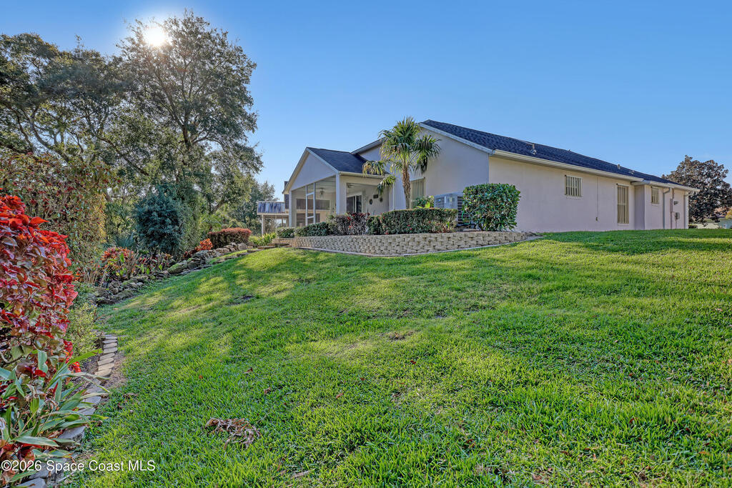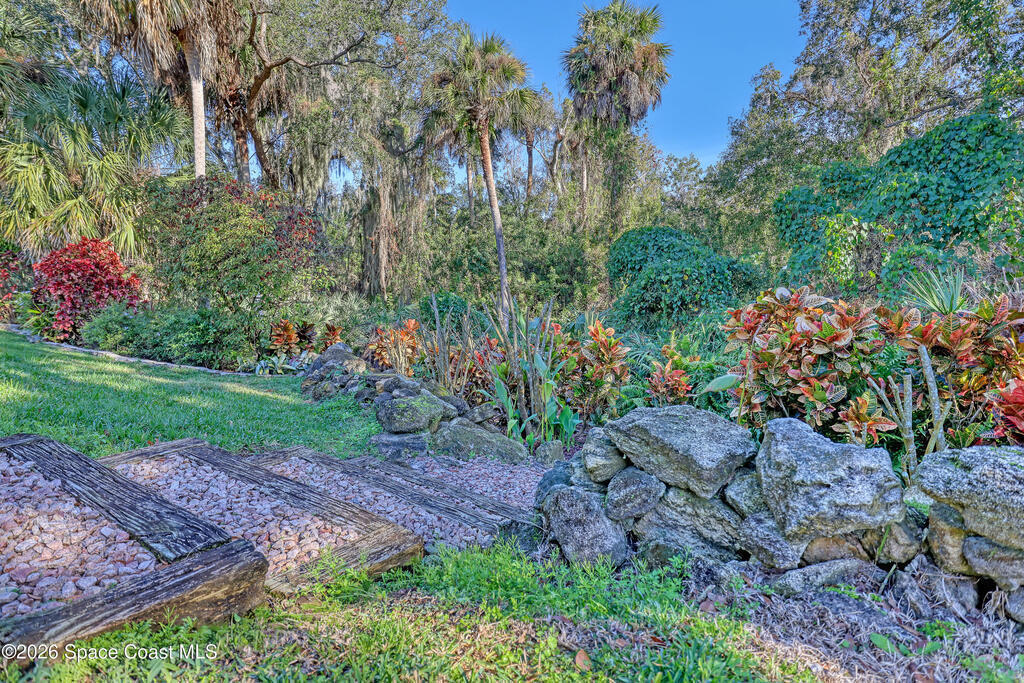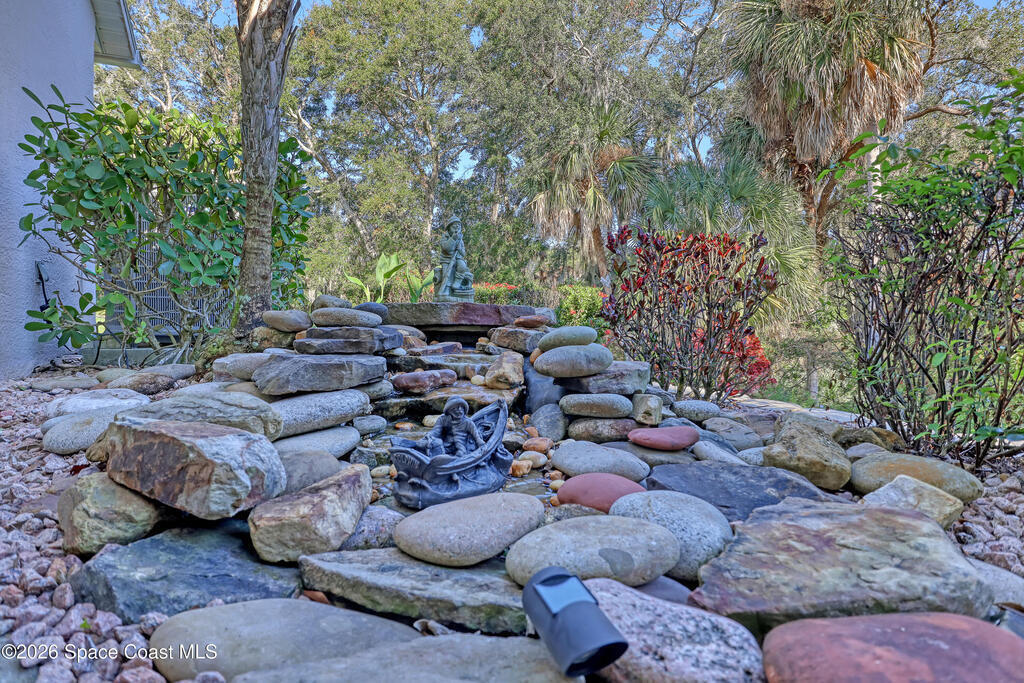 One of the most spectacular settings on one of the largest lots in Sandy Pines, this beautifully upgraded home is truly a standout. Light, bright, and open, the floor plan features tile throughout the main living areas, new carpet in the bedrooms, inside laundry room, skylights in the living room, and an expansive kitchen ideal for everyday living and entertaining. The meticulously landscaped yard showcases rock and water features, creating a peaceful retreat. Extras include clear & accordion storm shutters with 3M window coating, a deeper garage, and all appliances included. Located in a desirable gated community within walking distance to Turkey Creek Sanctuary, residents enjoy a heated pool, clubhouse, full lawn care, underground utilities, natural gas, walking trails, planned activities, and boat/RV storage. Convenient to shopping, beaches, schools, churches, and I-95.