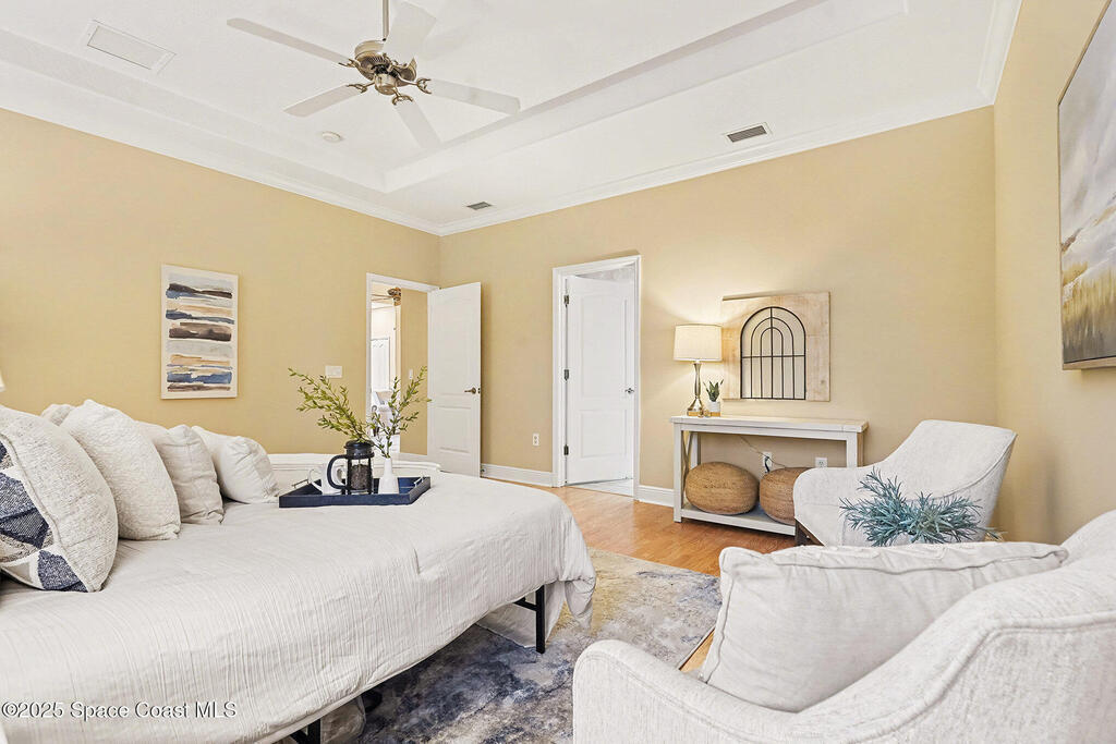 Spectacular OASIS awaits your arrival in the most prestigious, gated 55+ community in Viera. This immaculate 4-bedroom, 3-bathroom home offers 2,302 square feet of beautifully designed living space. Three-car garage (insulated doors) affords plenty of room for vehicles, golf cart and storage. Enjoy the ultimate Florida lifestyle in the fully screened lanai encompassing heated, salt water pool & spa (changeable colored lighting and freshly resurfaced surround). Soak up the sun or entertain guests(private Guest/mother-in law-suite/multi generational) private retreat. Step inside to discover fresh interior paint, elegant crown molding brand new flooring in bedrooms+more. Bathrooms feature granite countertops.Chef's dream kitchen boasts breakfast bar+nook, center island, granite countertops, double sink and tile backsplash complemented, by stainless steel appliances This home is beautiful and meticulously maintained, featuring new roof in 2021 and full house generator.