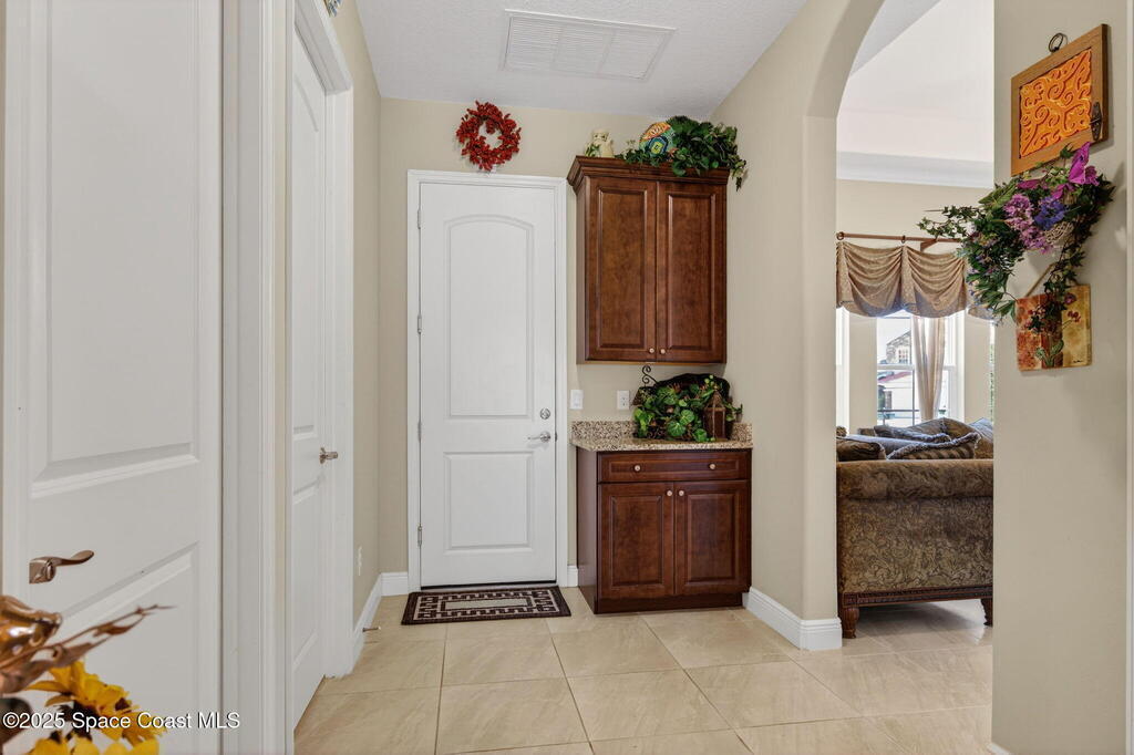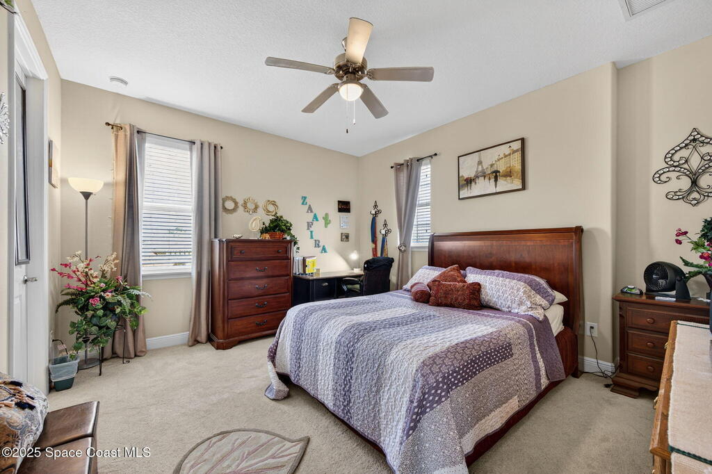 Custom built home in Viera in Gated Community - 4 Bedrooms, 5.5 Baths. Welcome to this beautifully appointed residence offering 4 spacious bedrooms, each with its own private bath, ideal for comfort and privacy. The home features a chef's kitchen with granite countertops, breakfast bar, and cozy eating nook, flowing seamlessly into the living, dining, & family room- perfect for entertaining & everyday living. Bonus room upstairs. Situated on a large third-acre corner lot, w/ outdoor kitchen, screened porch, and room for a pool, making it an entertainer's dream. The first-floor bedroom with full bath and private screened patio is perfect for multi-generational living or guests.Elegant details include tray ceilings, crown molding, and brand-new carpet throughout. Homes is block construction on first & second floor.Enjoy the lifestyle of Fairway Lakes where you can take your golf cart directly to Duran Golf Course, stroll to The Avenues , and benefit from the best Viera sch