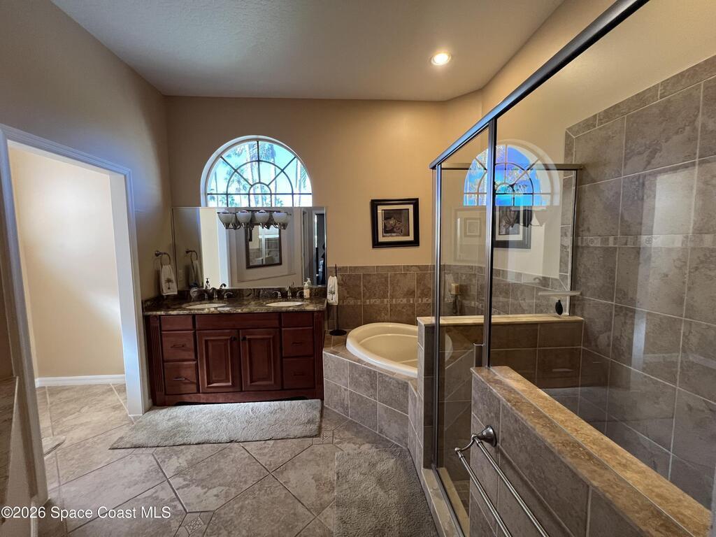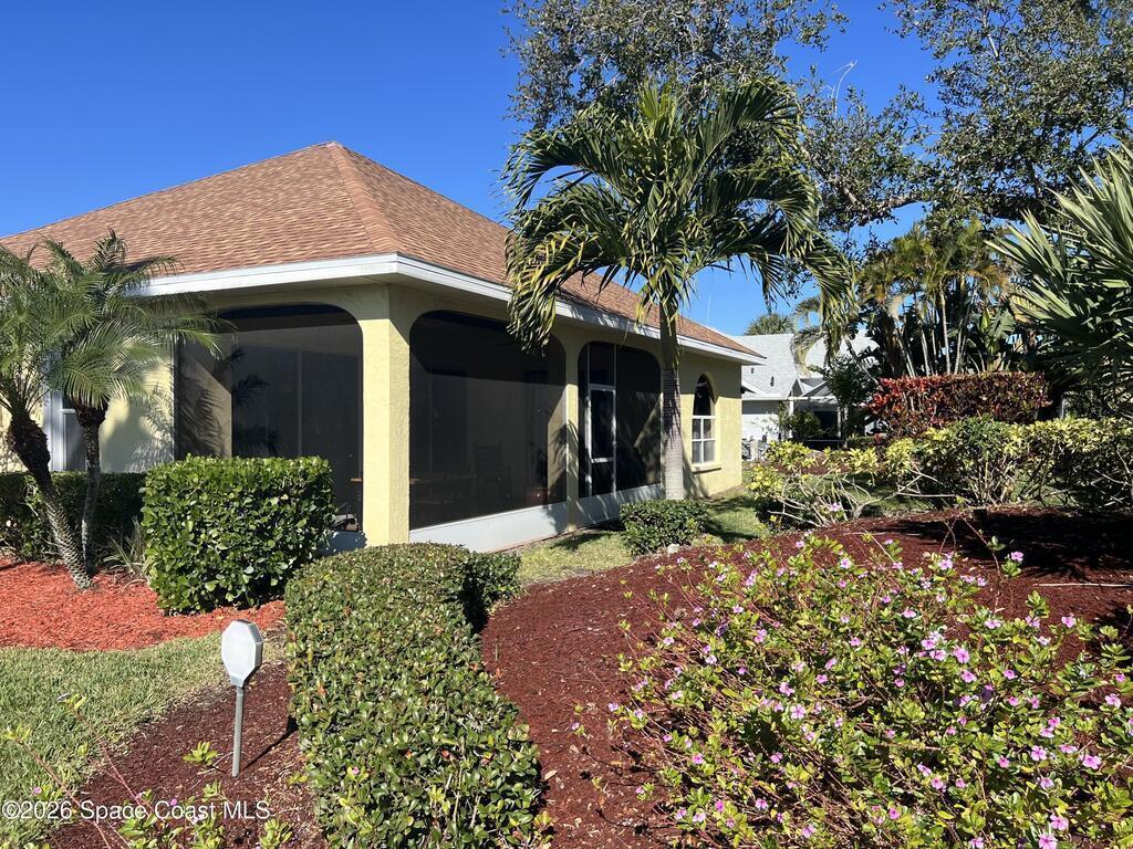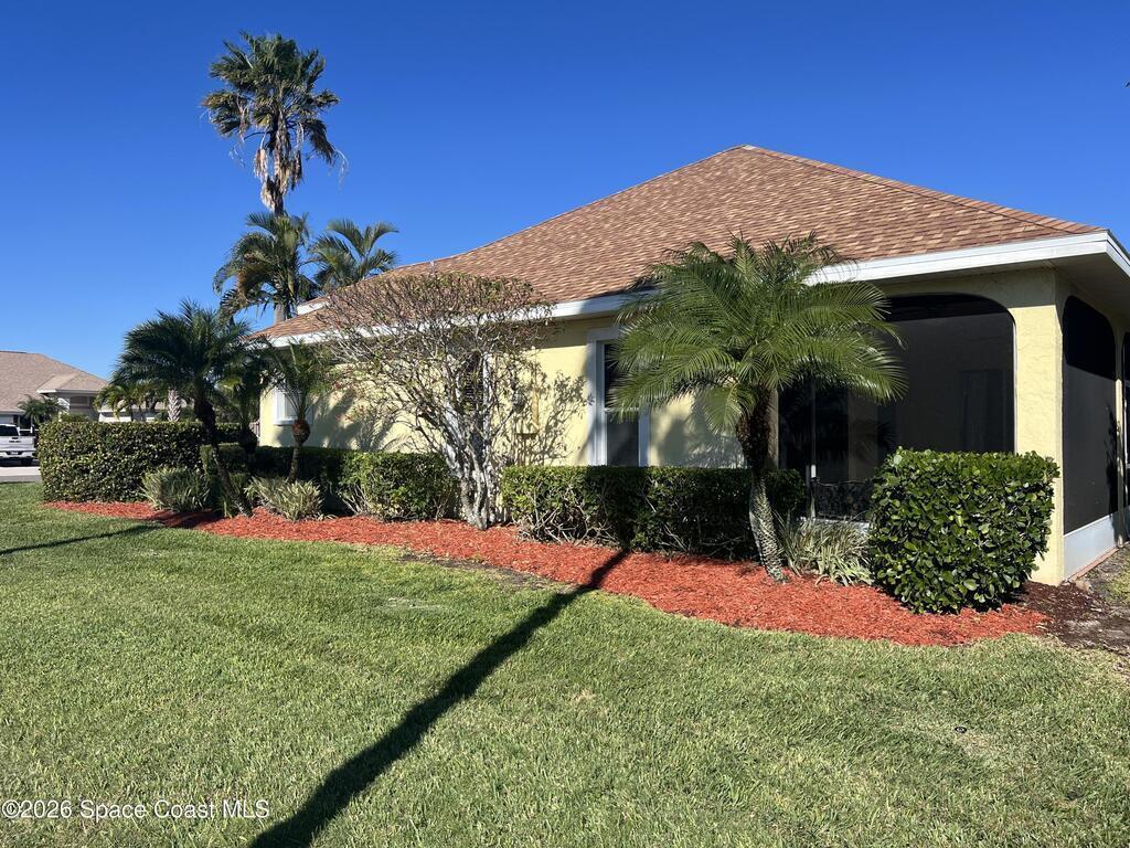 Start 2026 in this beautiful corner-lot home located in desirable Martesia. The side-entry oversized two-car garage and mature landscaping immediately showcase true pride of ownership, complemented by striking arched windows with plantation shutters.Enter through the double etched-glass front doors into soaring ceilings in the formal living and dining rooms. The home offers a fabulous split-floor plan with a gorgeous kitchen featuring stainless steel appliances, a gas stove, and granite countertops. A breakfast bar opens to a cozy family room, perfect for everyday living and entertaining. The primary suite offers a walk-in closet and bath with double sinks, separate tub, and shower.Three sets of sliding glass doors lead to a trussed, screened patio overlooking a lush backyard--ideal for relaxing or hosting guests. This home is truly move-in ready. Martesia residents enjoy neighborhood tennis courts, sidewalks, and a location just a short walk to the ocean.