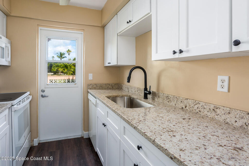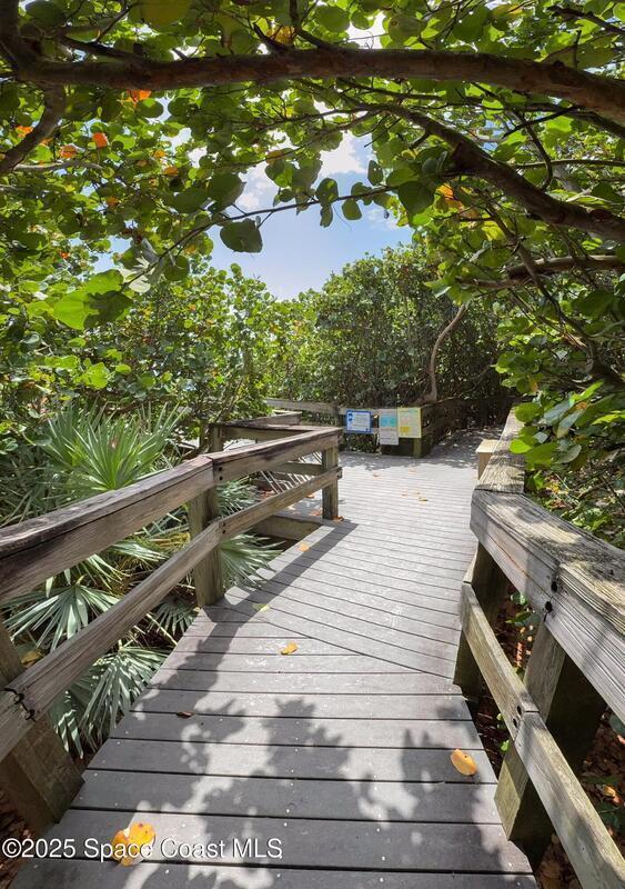 Rare opportunity to own a FIRST FLOOR Beachside condo in Melbourne Beach at this price! Move -in Ready 1 Bedroom/1 Bath with 1 car Garage directly across the street from the beach access! Beach Chateau is a Charming Courtyard designed Complex that offers quiet peaceful relaxation beside a community pool steps from your door. This 1st Floor unit boasts tons of natural light. Freshly painted , New Kitchen Cabinets and New Flooring. This building has solid poured concrete construction and Roof is only 4 years old. Association Fees cover TV Cable, Insurance, all exterior maintenance, roof, lawn & landscaping, trash, pool and free laundry in bldg. Shared On-site Laundry Room~1 Car Garage included! Take a short walk across the street to Loggerhead Park Preserve. Enjoy a serene dune crossover before stepping onto the beautiful Melbourne Beach! Close to Restaurants and Shopping! Do not wait or miss out on this one today! 6 month Rent Restriction. 25 pound pet max