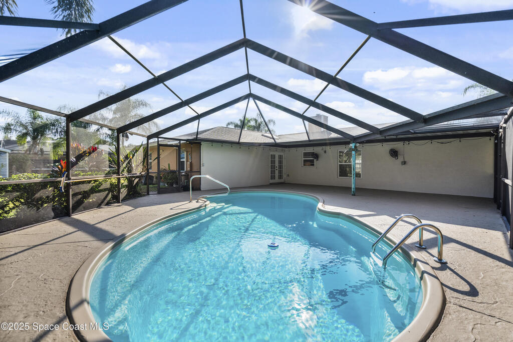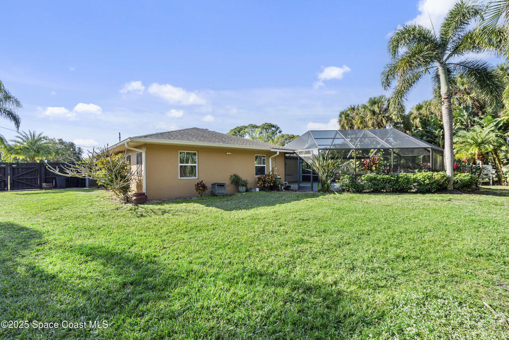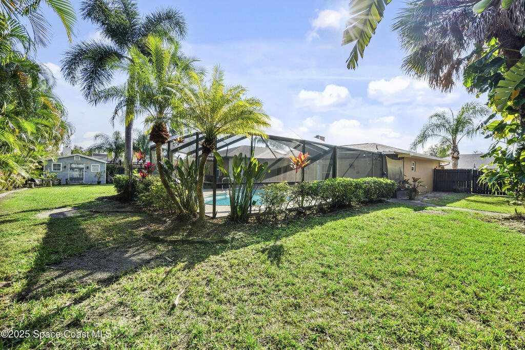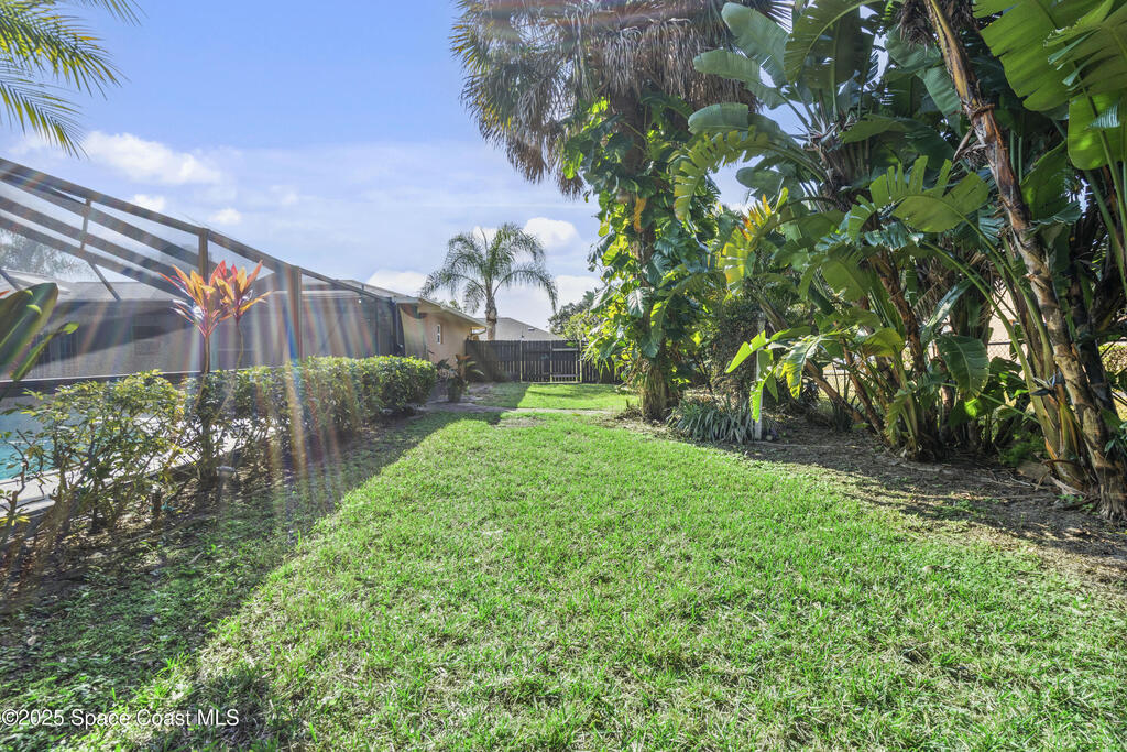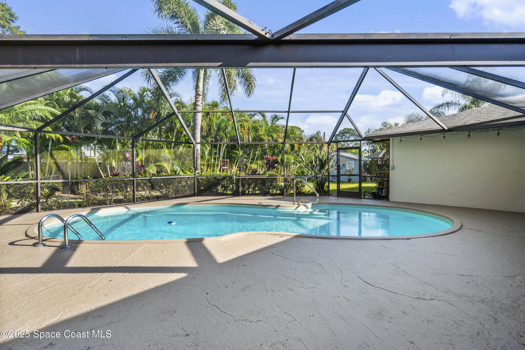 Welcome to this Palm Bay retreat! This beautifully maintained 3-bedroom, 2-bath home sits on a generous sized lot with a sparkling screened pool and a lush, tropical backyard lined with palms for added privacy and charm. Inside, you'll find a freshly painted interior and a comfortable, flowing floor plan that connects the main living areas with ease. The spacious primary bedroom features a walk-in closet. Step outside to the freshly painted pool deck and enjoy true Florida living. Plenty of space for relaxing, entertaining, or simply taking in the beautiful garden. This home offers room to spread out, enjoy the outdoors, and make the most of your own private oasis in Palm Bay.