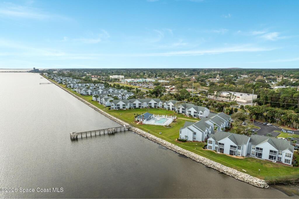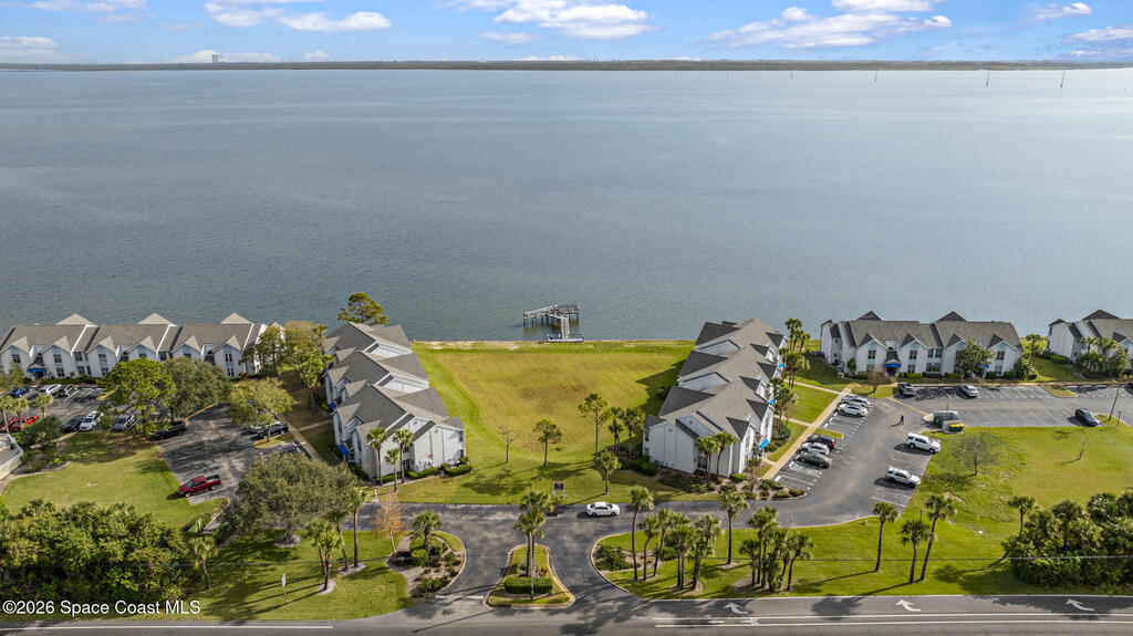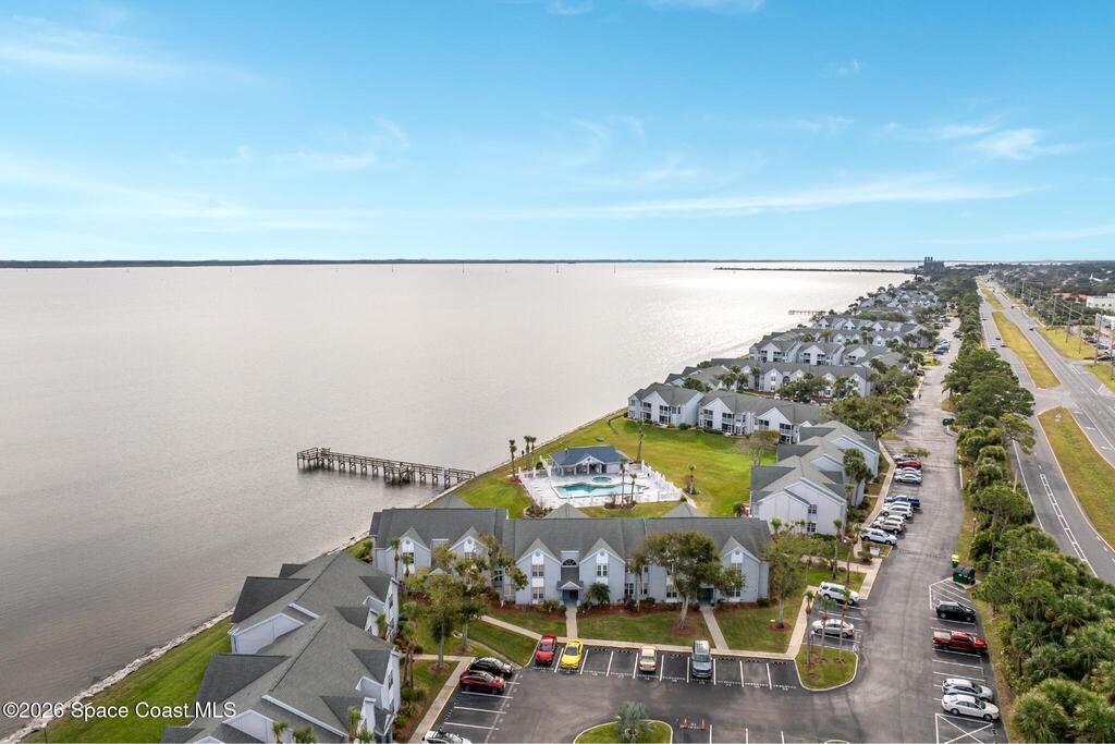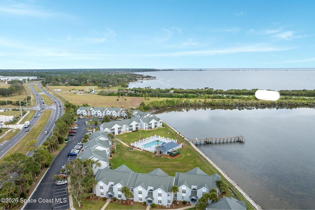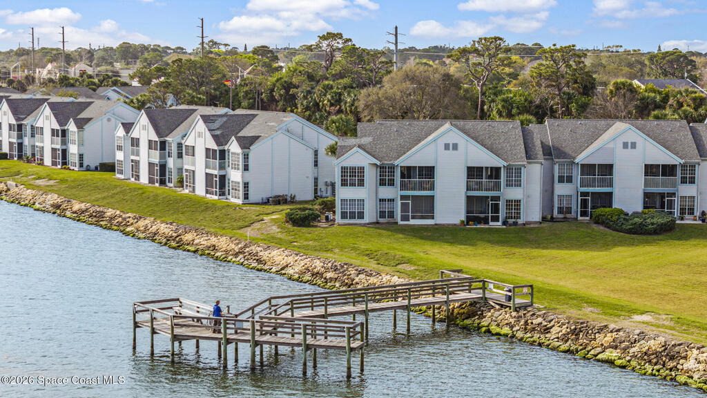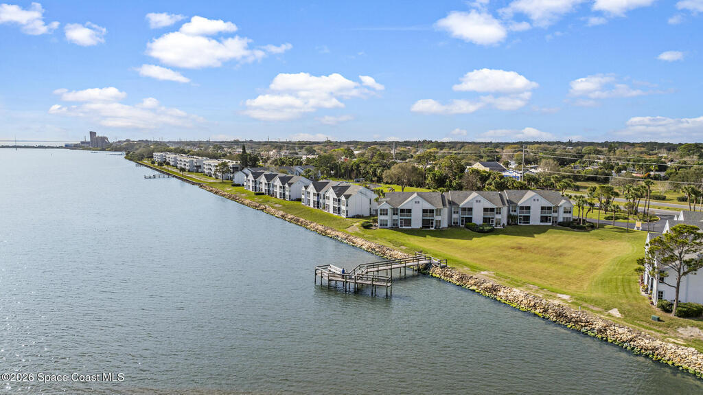 Nestled along the tranquil shores of the Indian River Lagoon, this beautifully updated first-floor end-unit condo offers captivating water views and a true coastal lifestyle. Wake up to shimmering sunrises, sip your coffee and watch dolphins and manatees glide by, and enjoy front-row views of iconic rocket launches--all from the comfort of your screened in waterfront patio.This spacious residence features 2 bedrooms plus a versatile flex room, ideal for a guest suite, home office, or fitness space, along with 2 full bathrooms and 1,186 square feet of thoughtfully designed living space. Ground-floor living with no stairs provides ease and convenience.The coastal-inspired kitchen showcases quartz countertops, white shaker cabinetry with gray accents, stainless steel appliances, a stylish backsplash, and a soft-touch faucet--perfect for both everyday living and entertaining. Bamboo laminate flooring flows through the main living areas, while plush new carpeting enhances the bedrooms