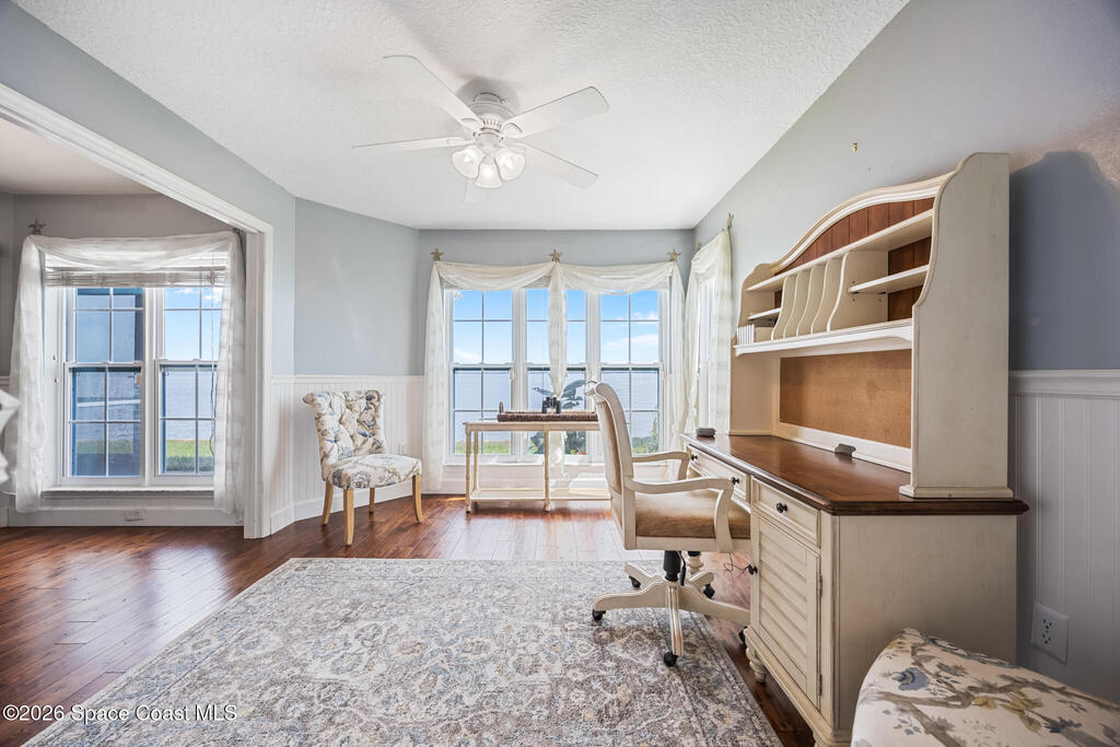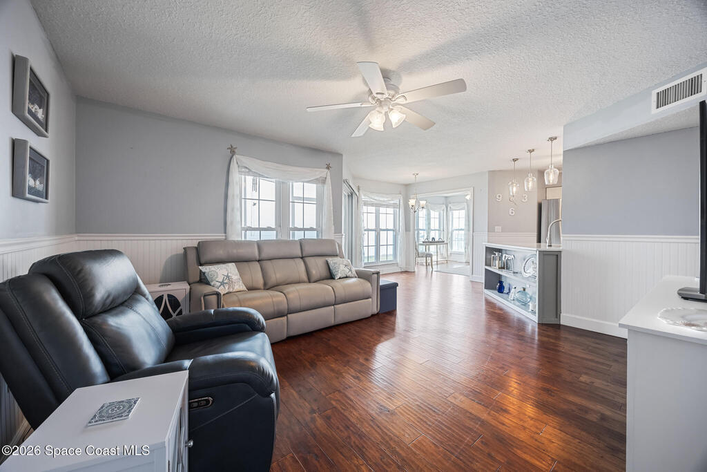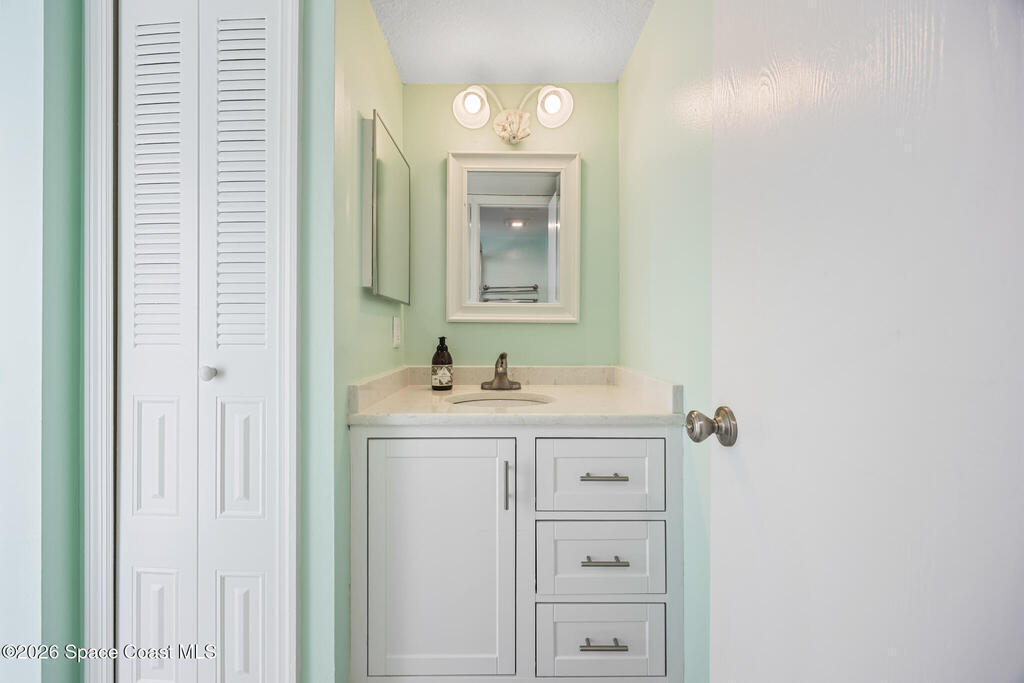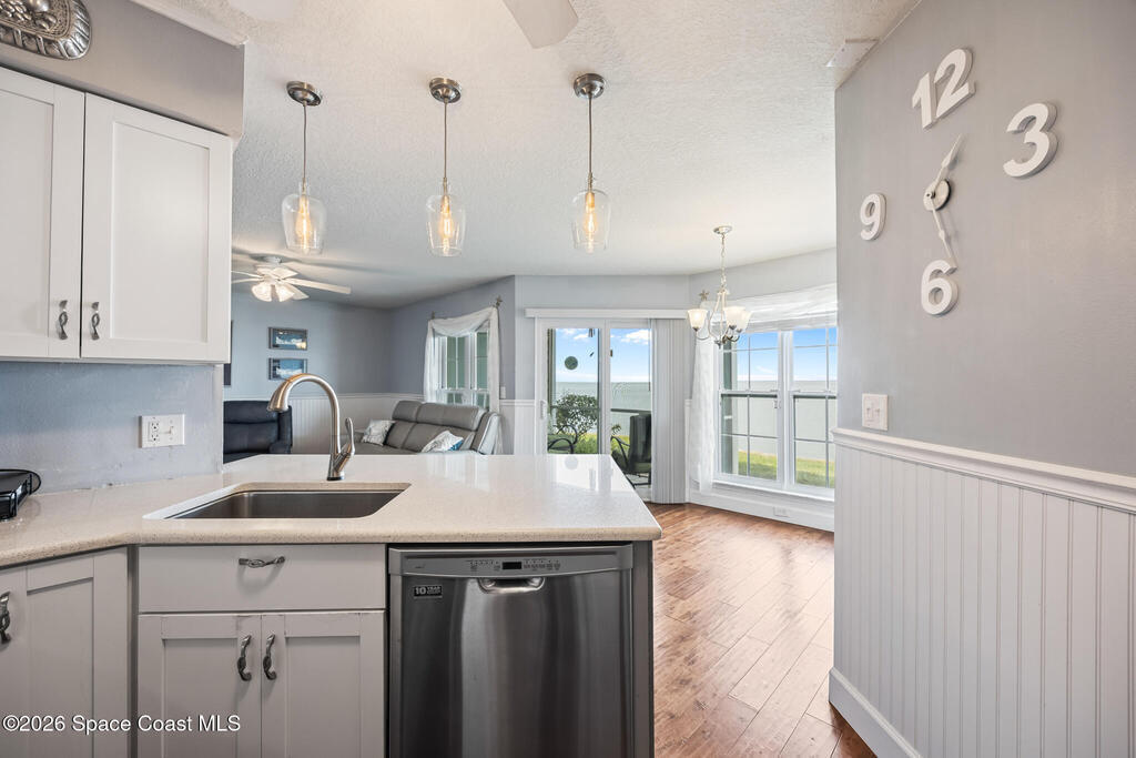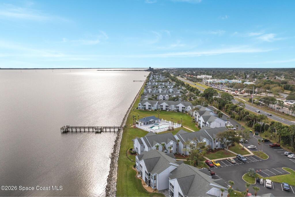 Nestled along the tranquil shores of the Indian River Lagoon, this beautifully updated first-floor end-unit condo offers captivating water views and a true coastal lifestyle. Wake up to shimmering sunrises, sip your coffee and watch dolphins and manatees glide by, and enjoy front-row views of iconic rocket launches--all from the comfort of your screened in waterfront patio.This spacious residence features 2 bedrooms plus a versatile flex room, ideal for a guest suite, home office, or fitness space, along with 2 full bathrooms and 1,186 square feet of thoughtfully designed living space. Ground-floor living with no stairs provides ease and convenience.The coastal-inspired kitchen showcases quartz countertops, white shaker cabinetry with gray accents, stainless steel appliances, a stylish backsplash, and a soft-touch faucet--perfect for both everyday living and entertaining. Bamboo laminate flooring flows through the main living areas, while plush new carpeting enhances the bedrooms