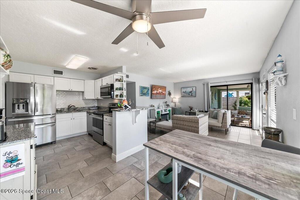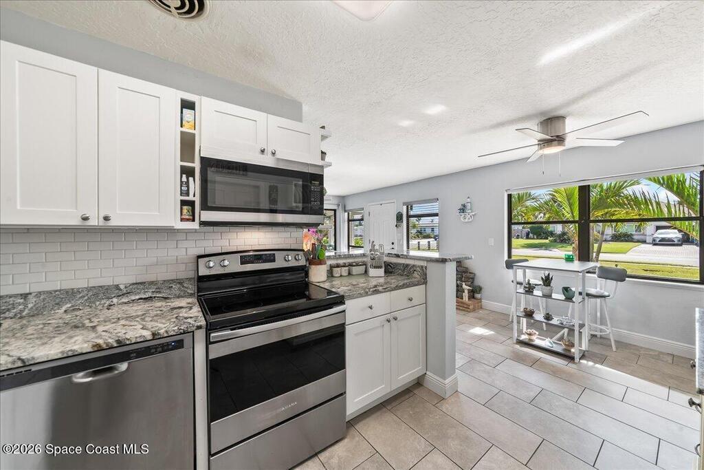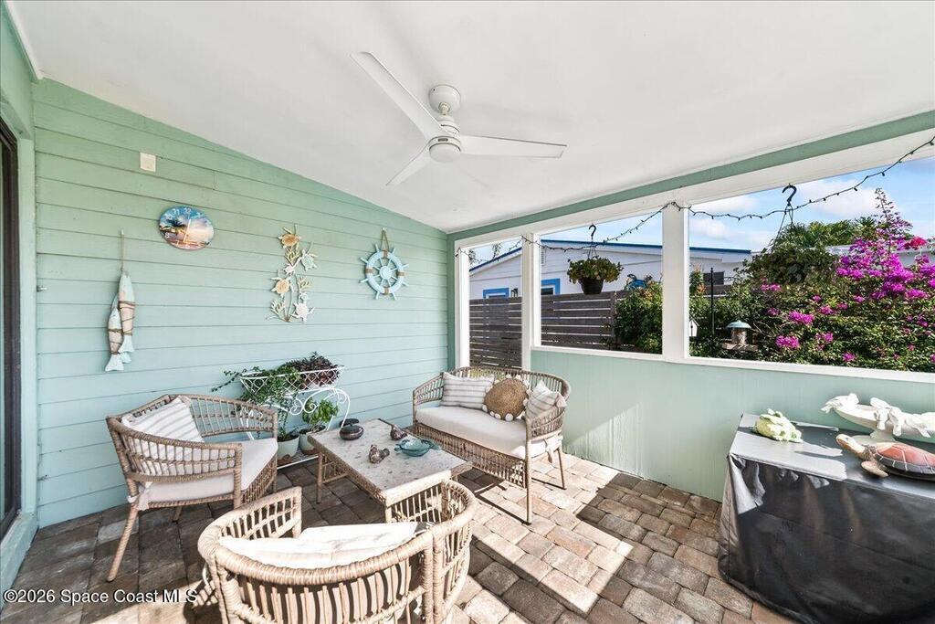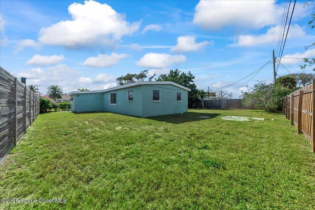 ACCEPTING SHOWINGS AND BACK UP OFFERS! Welcome home to this adorable, remodeled saltwater cottage! Only 1400 feet from the beautiful Atlantic Ocean, and located in a very active community, this beachside charmer is calling your name! The open concept features an updated eat in kitchen, granite countertops, stainless steel appliances, living room and dining room combo, and tile floors throughout the main living areas. Updates also include, fresh exterior paint, new roof 2024, new ducts 2025, new garage door, nice pavered driveway, walkway and porch.The expansive backyard is perfect for adding a pool or expanding the home. This is a must see! Move in ready and located near Patrick Space Force Base, Pineda Cswy, Pineda Beach Park, and Seagull Park, shopping and plenty of eateries! One block from the beach in a golf cart and bike friendly community.