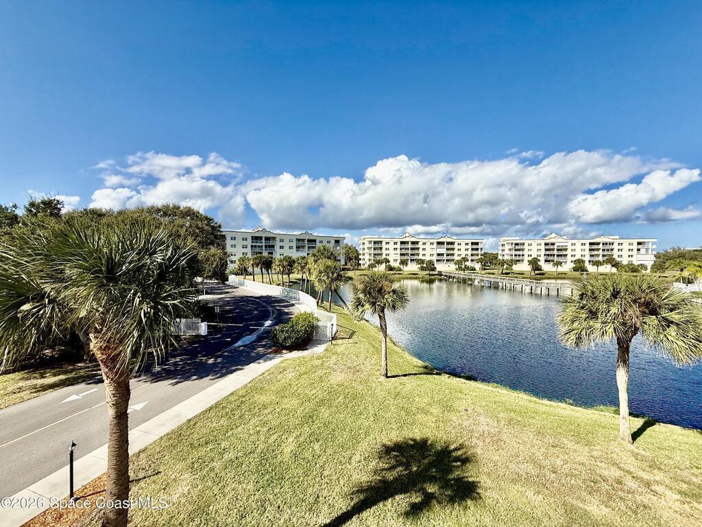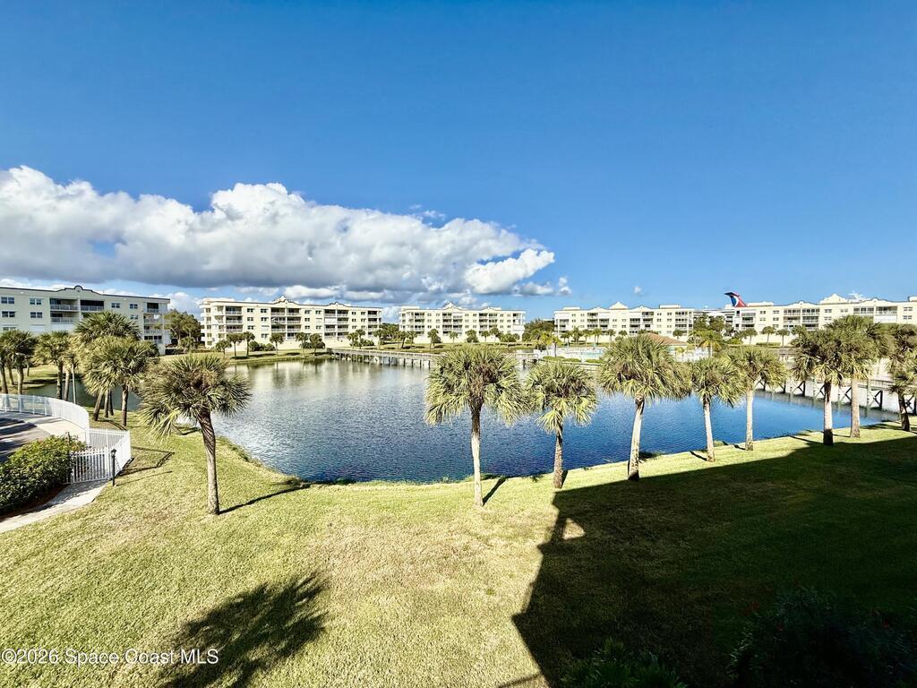 LUXURIOUS 3 BEDROOMS / 2 BATHROOMS CORNER UNIT in Solana Lake Complex! GORGEOUS lake view with open floor plan, breakfast bar, window treatment, storm shutters, wraparound private balcony, impact doors, wood flooring in living & bedroom areas, tile floor in bathrooms & kitchen areas, assigned 1 car garage, and much more!! Walk-in closet & shower in master suite with double vanity, garden tub, and separate entrance to balcony. The complex offers an in-ground community pool, hot-tub, clubhouse, secured building entrance, vehicle wash area, guest parking, beach access, tennis courts, and security gate. XLNT location near all thoroughfares with easy access to Port Canaveral, 520, 528, Kennedy Space center, restaurants, shopping centers, amenities & services, entertainments, Patrick AFB, Publix grocery, downtown Cocoa Beach, and just an hour to Orlando/ attractions! DON'T MISS OUT...