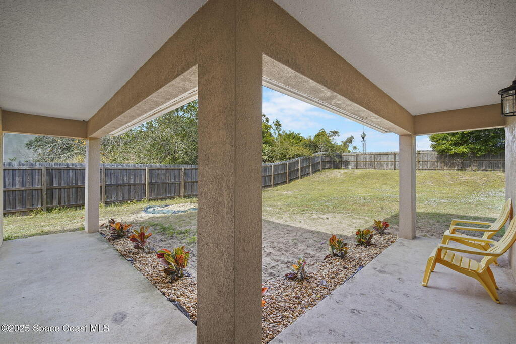 Built in 2007, this inviting Mims home offers the space, layout, and updates today's buyers are looking for. Inside, you'll find 4 generously sized bedrooms arranged in a desirable split floorplan. The open-concept living area is warm and welcoming, accented by durable wood-like tile that flows seamlessly throughout the main spaces.At the heart of the home is an updated kitchen featuring granite countertops, stainless steel appliances, and a standout refrigerator with a craft ice option producing cubed, crushed, and ice balls. Perfect for entertaining or everyday convenience. The primary suite is a true retreat, offering a spacious bedroom, an updated bathroom, and his-and-hers closets. An extended garage provides extra space for storage or that larger vehicle. Enter the home through an inviting screened front porch, perfect for relaxation. Out back, the home sits on a quarter-acre lot with a huge fenced backyard. Ideal for pets, play, gardening, or future outdoor living plans.