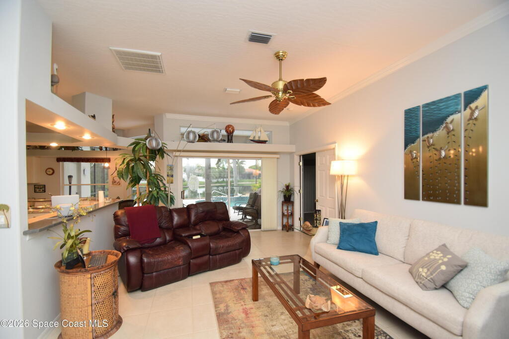 Welcome Home to Melbourne Beach FL, Ocean Ridge II of Brevard! A gated community with a nature preserve welcoming entry! Enjoy the ocean breeze by the screened in pool oasis with your relaxing direct view of the beautiful lake! This home is the perfect size offering 3 spacious bedrooms, split bedroom design, an Amazing family room with dining room, an OPEN PLAN concept. The well designed Kitchen features a step up breakfast bar that opens to the breakfast nook with picture perfect views! A large owners suite has a slider door access to your pool oasis and separate hot tub! Enjoy dual closets, a large vanity and separate tile shower & soaking tub. Other features: Tile flooring, ceiling fans, brick paver driveway, FULL SOLAR on both home and pool - HUGE SAVINGS on your monthly energy costs! Gorgeous leaded glass front door with side-lights, slider door access to covered porch / pool area. The guest bath offers a pool door access too! The oversized 2 car garage 22 x 22! A MUST SEE!