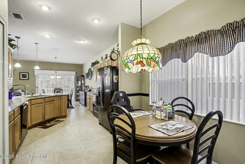 Resort-Style Living in Heritage Isle | Melbourne, FL Welcome to 6973 Premonition Drive, located in the highly sought-after Heritage Isle--one of Melbourne's premier 55+ communities where lifestyle truly comes first. This thoughtfully designed home offers 2 bedrooms, 2 bathrooms, plus a versatile flex room that can easily serve as a third bedroom, den, or home office, giving you flexibility without wasted space. Tile flooring flows through the main living areas, while carpeted bedrooms add comfort and warmth where you want it most. The kitchen is both stylish and functional, featuring newer granite countertops, a stainless steel sink, black stainless steel appliances, and a convenient eat-in area--perfect for casual meals, morning coffee, or hosting friends. The kitchen opens seamlessly to the living and dining areas, making everyday living and entertaining effortless.