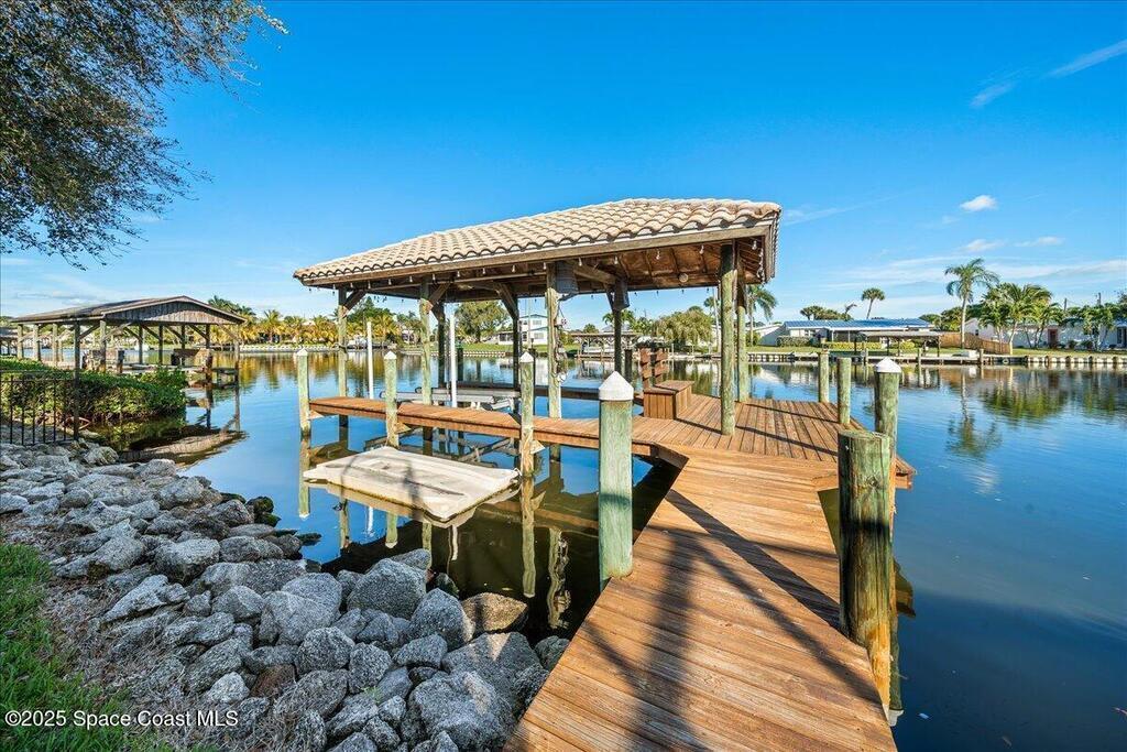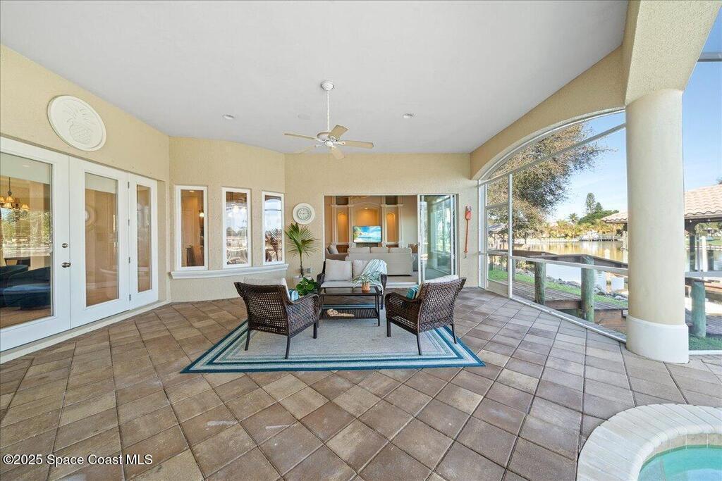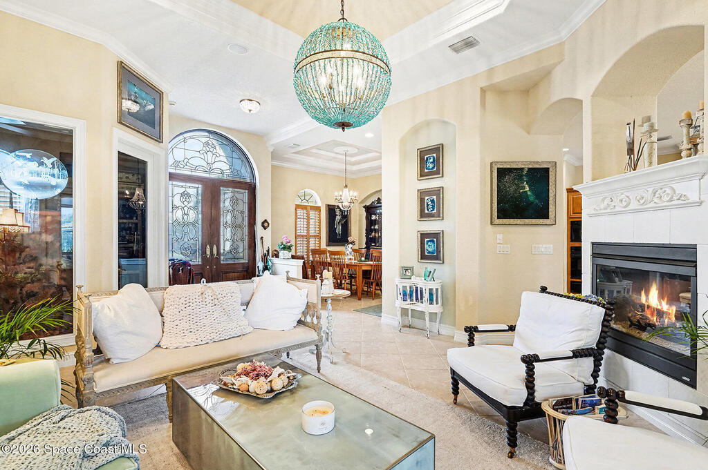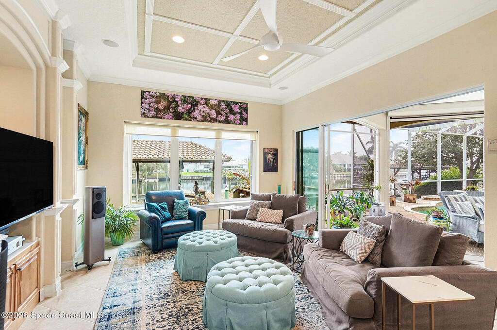 Experience the pinnacle of coastal luxury in the exclusive gated community of Tortoise Island. This exceptional Arthur Rutenberg-designed, concrete block Mediterranean estate offers 4,301 sq ft of refined living space (6,872 total sq ft). Featuring 4 bedrooms and 4 bathrooms, the home is defined by timeless elegance and architectural depth, highlighted by sophisticated coffered ceilings.Enjoy breathtaking deep-water Grand Canal views from nearly every room. The private backyard oasis features a screened-in pool and spa, plus a private dock for direct canal access--perfect for boating enthusiasts. Inside, the open-concept layout is anchored by a stunning see-through gas fireplace connecting the formal living area and kitchen. Two versatile bonus rooms provide flexible space for a home gym, cinema, or executive office. Complete with a 3-car garage and a design that effortlessly blends indoor and outdoor living, this residence delivers a premier Satellite Beach lifestyle .