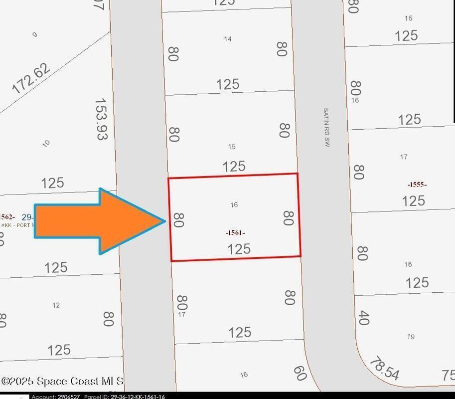 Here is a 0.23 acre buildable single family residential lot [Rs2 Zoning] available in Port Malabar Unit #32 of Palm Bay. This lot features a 2024 home adjacent and across the street from the property and has a drainage right-of-way easement canal in the back. Nicely located in the SW section near the Bayside Lakes Subdivision. this lot is just 3,3 miles -9 minutes- to Publix Shopping, 2,1 miles -5 minutes- to Bayside High and Westside Elementary Schools, and just 15.7 miles -35 minutes to the ocean at Indialantic. Malabar Road West, L on Garvey, L on Scenic, R on Satin