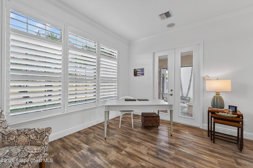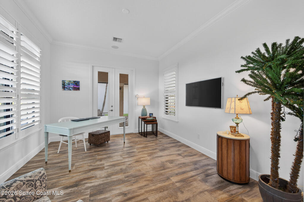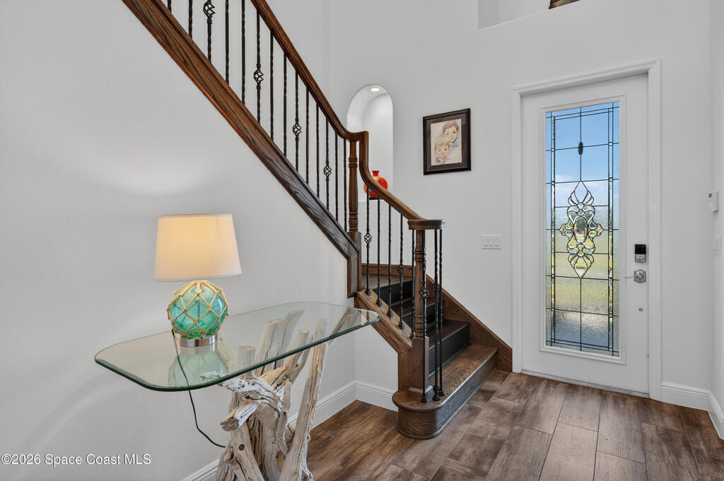 Exceptional luxury meets effortless Florida living in this beautifully appointed 4-bedroom, 4.5-bath residence with a bonus room, ideally located in the heart of Viera. Thoughtfully designed and professionally decorated in a timeless Serena & Lily-inspired style, this home offers high-end finishes, modern conveniences, and lake views, and is move-in ready with the option to be sold partially furnished.The gourmet kitchen features ceiling-height cabinetry and premium finishes, flowing seamlessly into spacious living areas enhanced by a whole-home speaker system and a striking fireplace. Hurricane-rated windows, plantation shutters throughout, and recent interior paint provide peace of mind and a fresh, turnkey feel.Indoor-outdoor living shines in the private courtyard, complete with remote screens, a fully equipped summer kitchen, and a built-in fire pit perfect for entertaining or relaxing year-round. In addition to the 2 car garage, there is a golf cart garage as well.