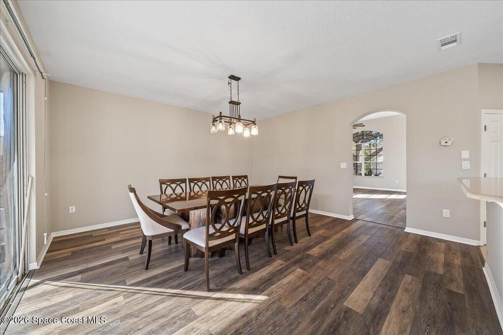 Welcome to this spacious 4BD/3BA pool home in the desirable Oaktrails at Meadowridge. Featuring a downstairs bedroom with full pool bath, plus an upstairs primary suite, 2 guest bedrooms, full bath, and a large loft perfect for office, playroom, or second living space. Fresh interior paint and NEW carpet upstairs (2025). Sparkling heated pool & spa with recently re-screened enclosure. Ideal for entertaining or watching rocket launches from home. Double laundry units stay! ROOF 2018. Lush yard with mature shade trees and a 2-car garage with overhead storage. Close to beaches, parks, bike trails, boat ramps, & I-95. Short drive to NASA & Orlando. This is Titusville living at its best!