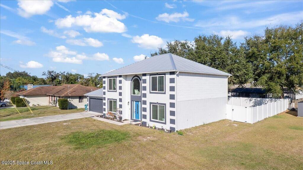 MOTIVATED SELLER, BRING ALL REASONABLE OFFERS! This updated home in Port St. John features a beautiful kitchen with granite countertops, stainless steel appliances, and a large corner pantry. It includes a bonus room that can be utilized as an office or 5th bedroom and a large screened-in porch. A 20 SEER Carrier Infinity HVAC (2018), a 2019 hot water heater, and fresh interior paint. The white vinyl fenced in yard has a utility shed with HVAC and a ramp. This oversized 50-ft driveway is perfect for parking a boat or RV with a 50-amp hookup available on the side of the house. The 3-car garage has a 2-car entrance (27 ft x 20 ft) and a 50-amp hookup for an EV car charger. All-new impact windows and sliding door (2022) and a new metal roof (2021). This home is move-in ready!