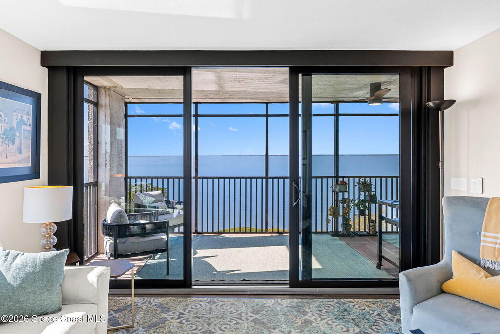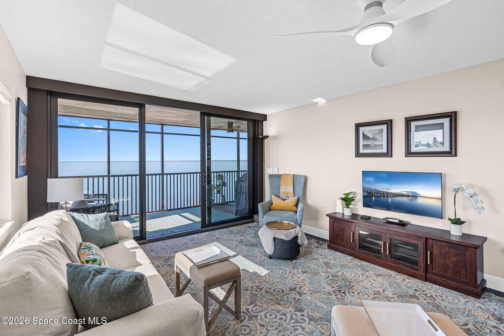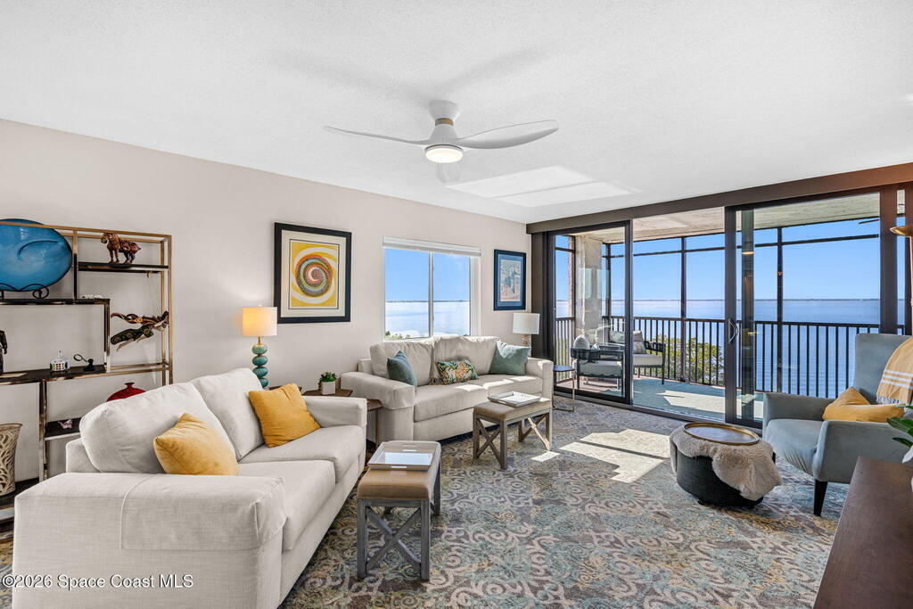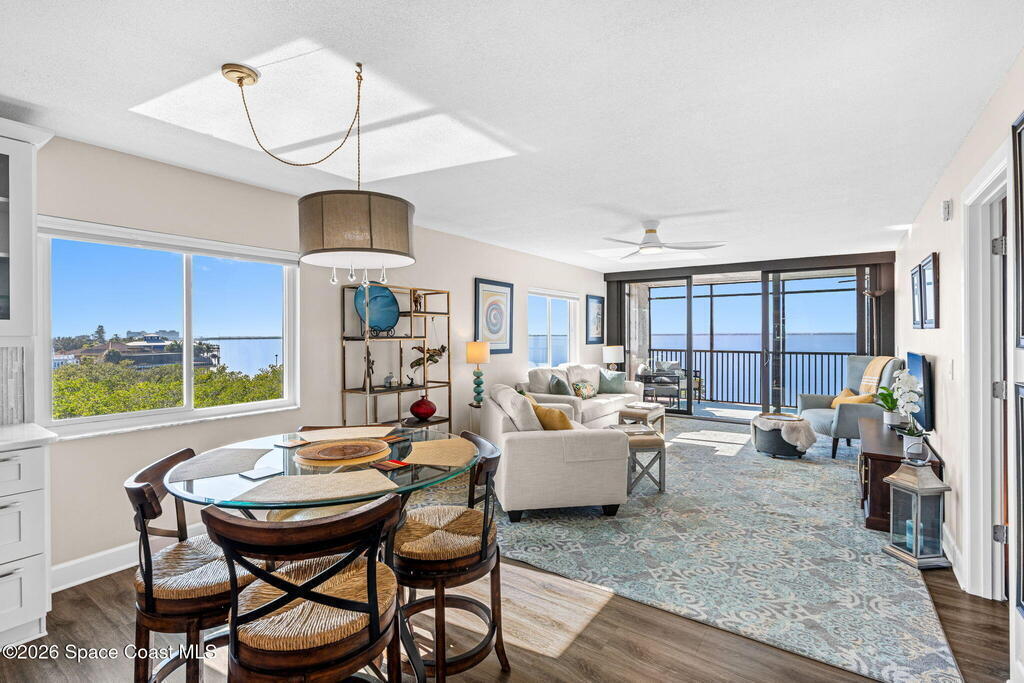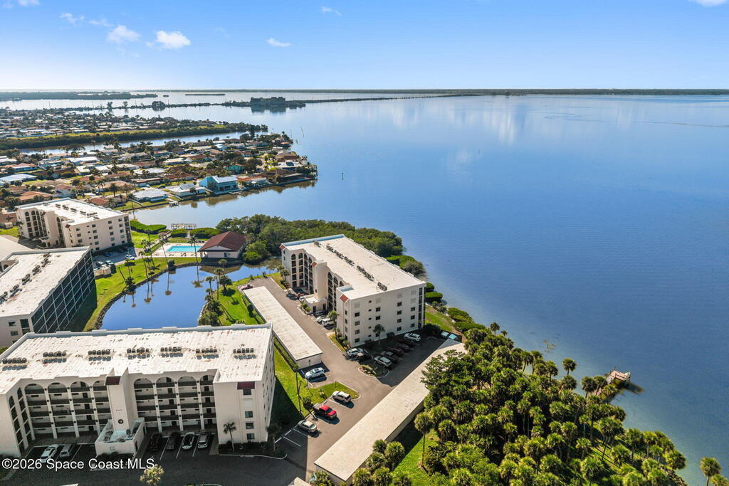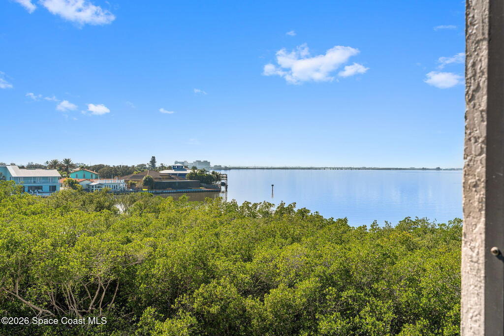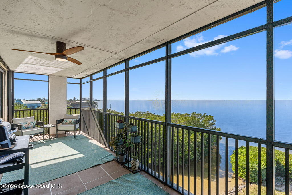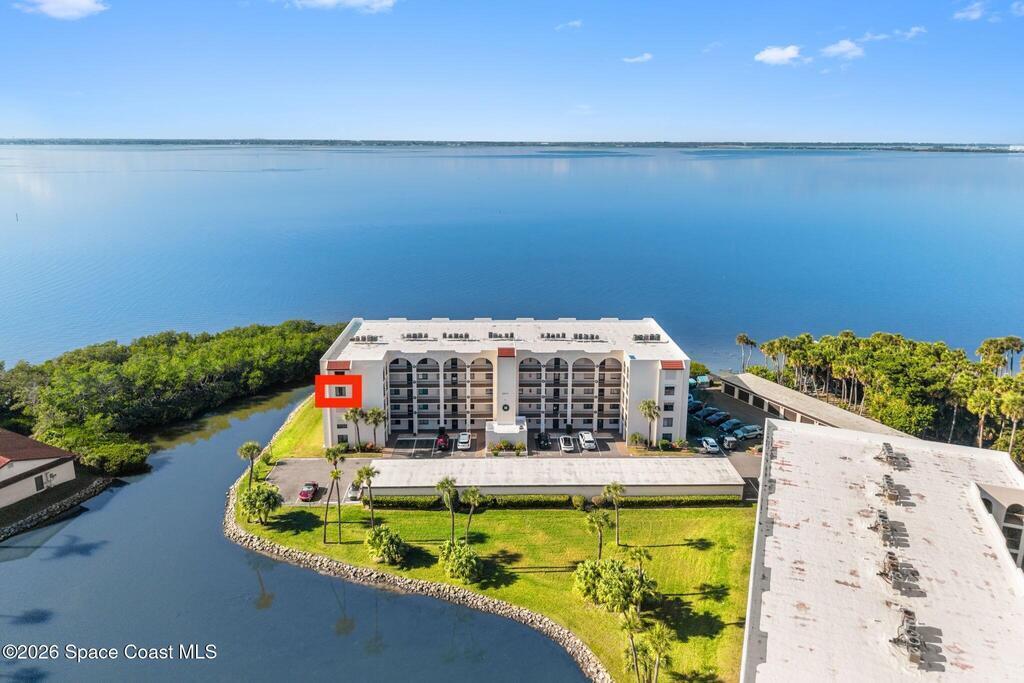 This move-in ready, fully renovated end-unit condo boasts breathtaking 180 degree water views, including direct views of the Banana River from the large screened balcony, making the property feel like a private retreat! Savor spectacular sunsets while watching dolphins and manatees glide through the adjoining canal to the community's private lagoon. Modern interiors feature a gourmet kitchen with quartzite countertops and stainless steel appliances, wine/coffee bar, luxurious updated bathrooms, large walk-in primary closet, and cohesive luxury vinyl flooring throughout. Enjoy hurricane impact windows, new sliding glass doors, and in-unit laundry for ultimate comfort and peace of mind. This prime location offers walking distance to pristine beaches, local restaurants, and shopping. Set sail from vibrant Port Canaveral, only a few minute drive away. The community offers two pools (one heated), tennis/pickleball courts, clubhouse, kayak storage, dock with river access, and much more!