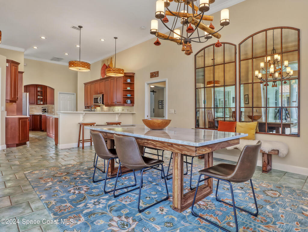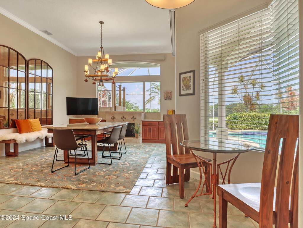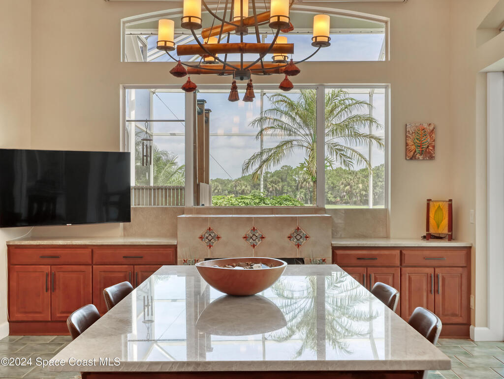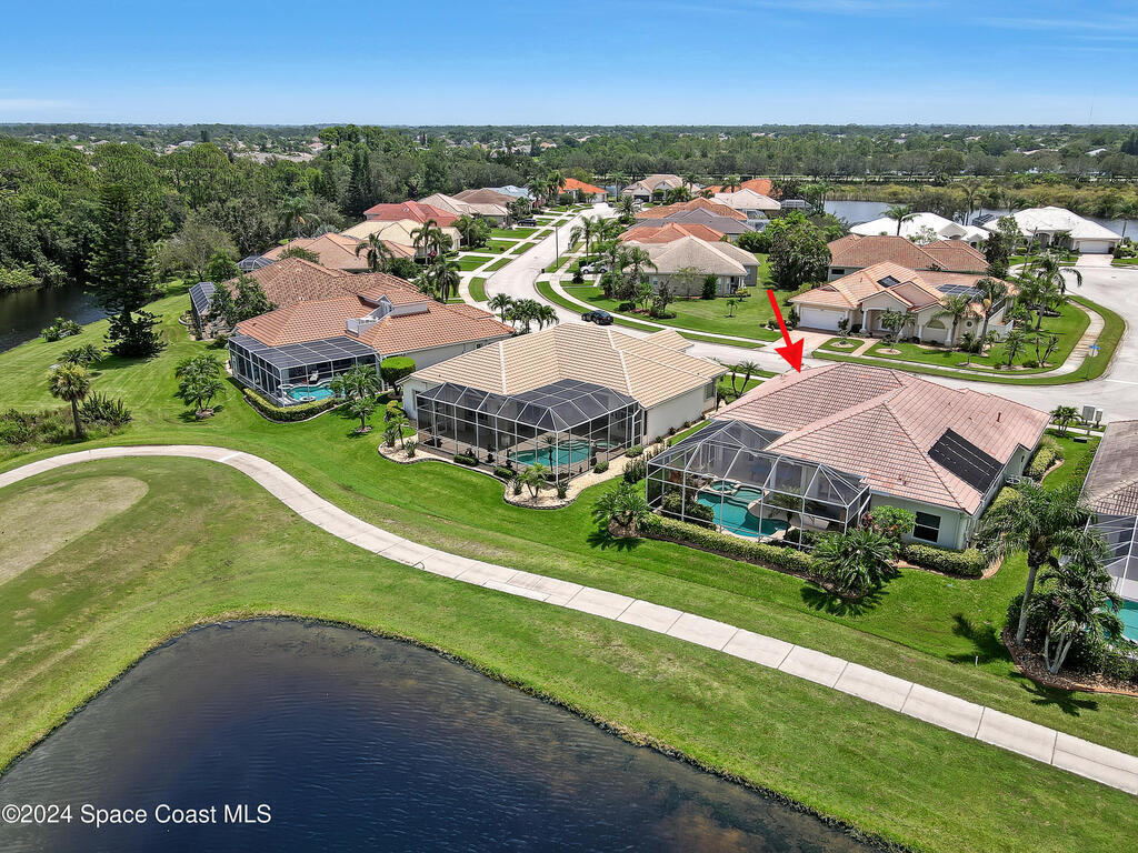 Enjoy paradise in this fully furnished 3 BR, 3 BATH lakefront pool home nestled on the beautiful Viera East Golf Course! The breathtaking nature views and 12-ft ceilings give this home the wow factor. Resort-style living at its best with your private screened in pool, hot tub and magical outdoor shower! Includes a 4 seater electric golf cart & in-home fitness area! Light bright open floor plan features tile throughout. Designer decor welcomes you. You'll be cooking with gas in the gourmet kitchen with solid wood cabinetry, new SS appliances, and quartz countertops. Watch rocket launches from your front yard! Sought after, quiet neighborhood in Viera/Rockledge area near I-95. A golf cart drive to a new Whole Foods, grocery stores, top restaurants, hardware stores and more! Yard and pool maintenance is included. Rental includes the community clubhouse and amenities. Try the golf practice area, 18 holes, pickleball or tennis. Central Florida's Space Coast is your place to retreat!