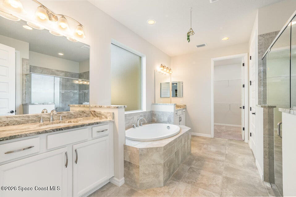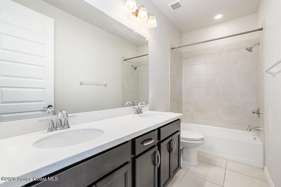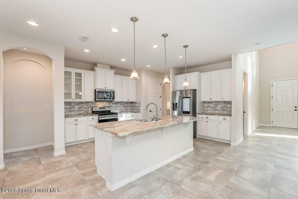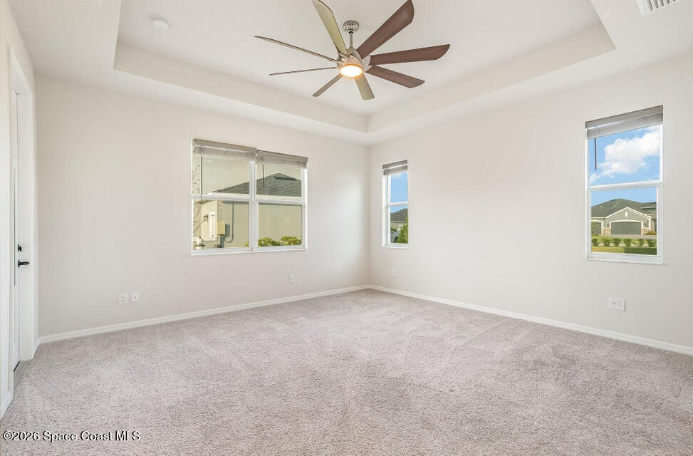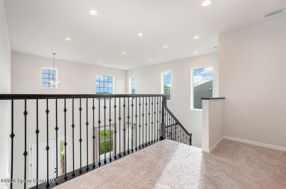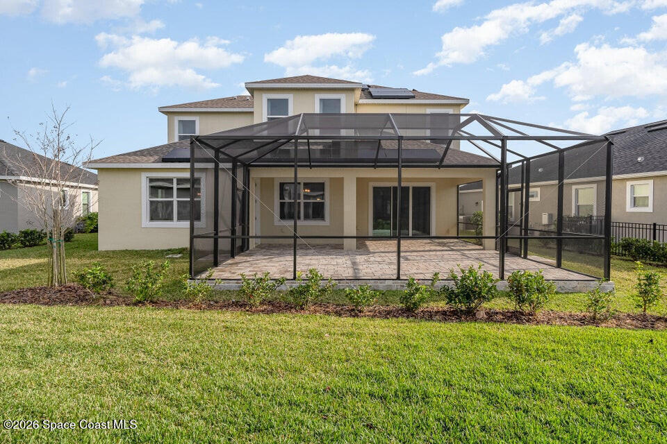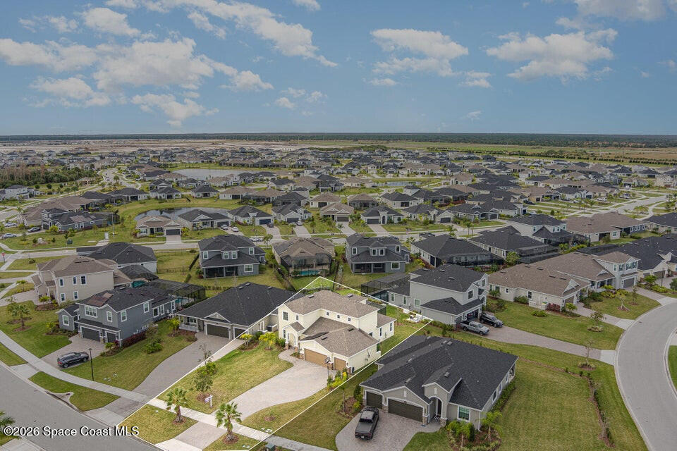 FIRST FLOOR OWNER'S SUITE MULTI GEN LAYOUT OVERSIZED 3+ CAR GARAGE 9 CAR DRIVEWAY EXTENDED LANAIBeautiful Viera Builders home inspired by the Bentley/Hartley model, offering energy efficiency, flexible living, and modern finishes. The first floor owner's suite features tall 8' doors, high ceilings, and a private retreat. An open flex space near the stairs is perfect for an office or extra living area. The kitchen includes an oversized granite island, premium cabinetry, stainless appliances, and great storage. Living and dining areas open to a large screened lanai with preinstalled plumbing/electrical for a future summer kitchen. Upstairs offers a full guest suite, two additional bedrooms with a shared bath, walkin closets, a loft workspace, and an upstairs washer/dryer. Independent upstairs/downstairs temperature control. Extra large 3+ car garage and massive driveway for up to 9 vehicles