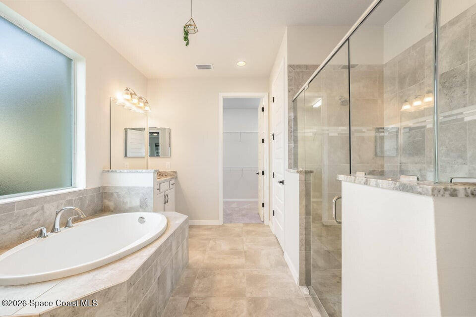 Breakfast Bar , Ceiling Fan(s) , Entrance Foyer , His and Hers Closets , Jack and Jill Bath , Kitchen Island , Open Floorplan , Pantry , Primary Bathroom -Tub with Separate Shower , Primary Downstairs , Smart Thermostat , Split Bedrooms , Vaulted Ceiling(s) , Walk-In Closet(s)