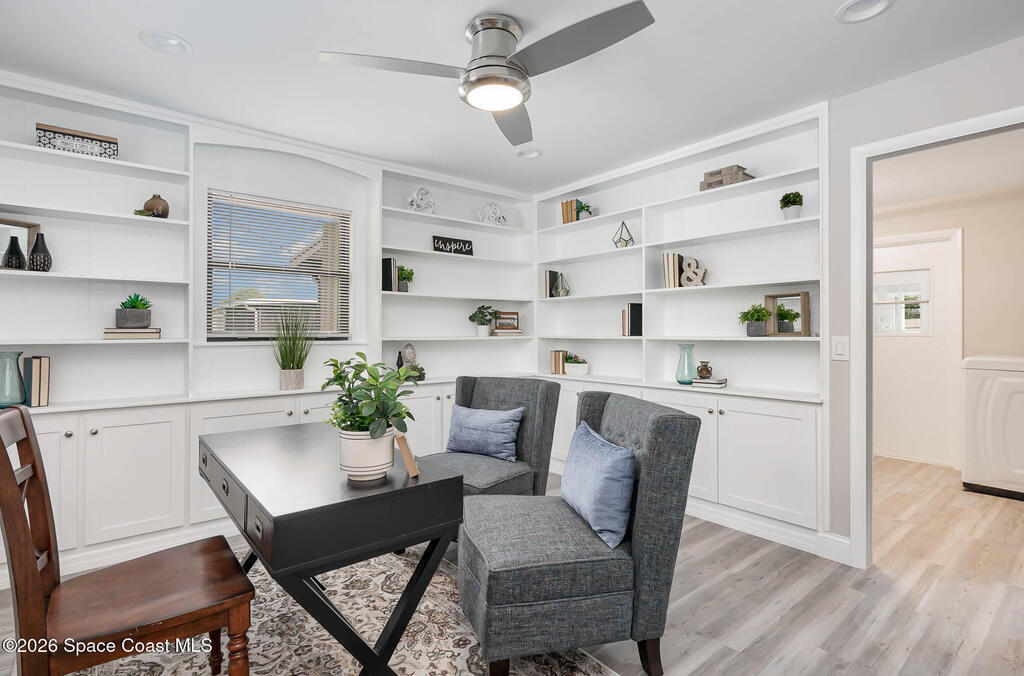 PRICED TO SELL! Come see this Stylishly Updated 1819 sq ft 4 Bed/2.5 Bath home in a convenient location. Beautifully renovated kitchen and bathrooms offer contemporary finishes you will love, including quartz countertops and subway tile. Enjoy the large kitchen with tons of cabinet and countertop space, pantry and room for a table or bar area. Open concept living and dining room, plus additional family room provides comfortable space for everyone. The secluded 4th bedroom is perfect for an office, with built in shelving, 1/2 bath and separate entrance. Large and private screened porch for outdoor entertaining and relaxation. Abundant storage with large laundry room, garage and shed. Exterior accordion shutters quickly pull closed and lock for quick and easy hurricane protection. This light filled home is super clean and ready for you to move in! Corner lot adds to the privacy. Pictures show home staged with real furniture, not virtually staged.