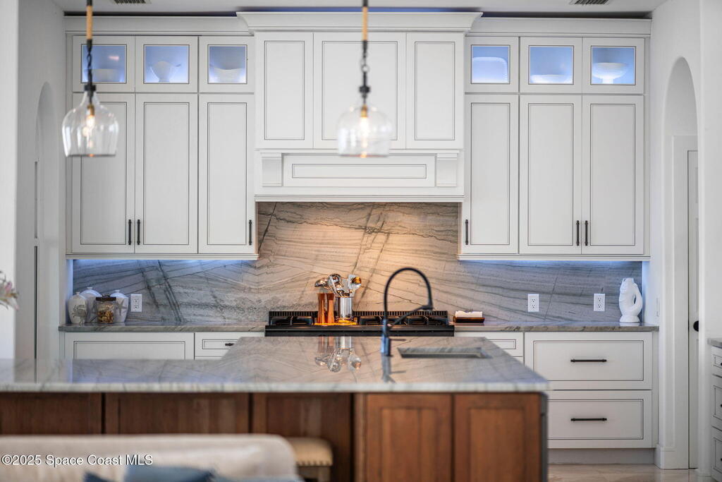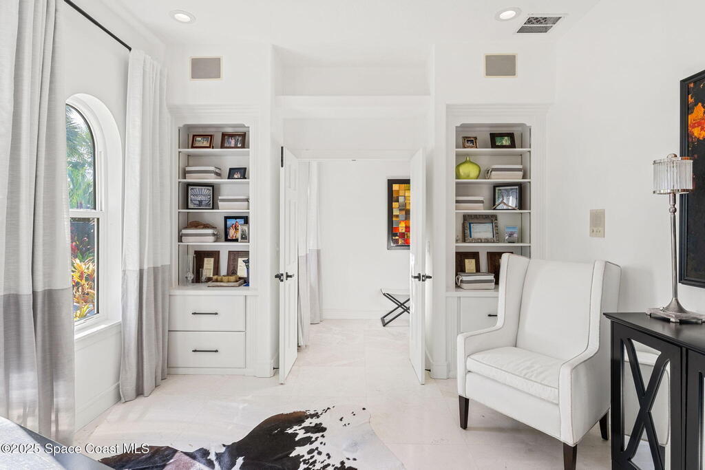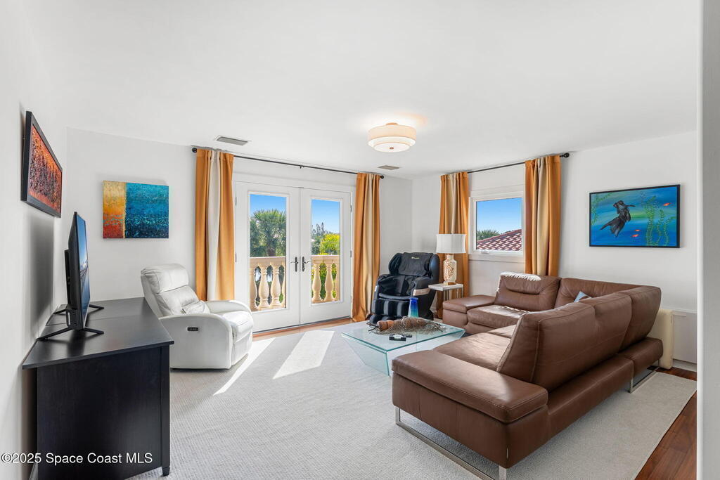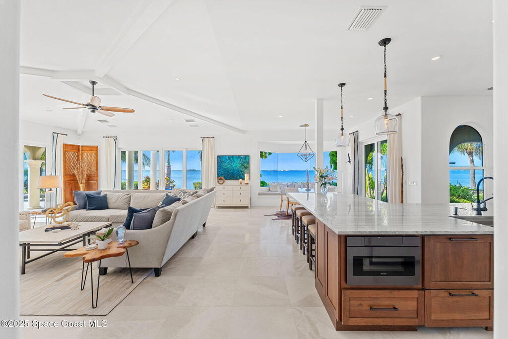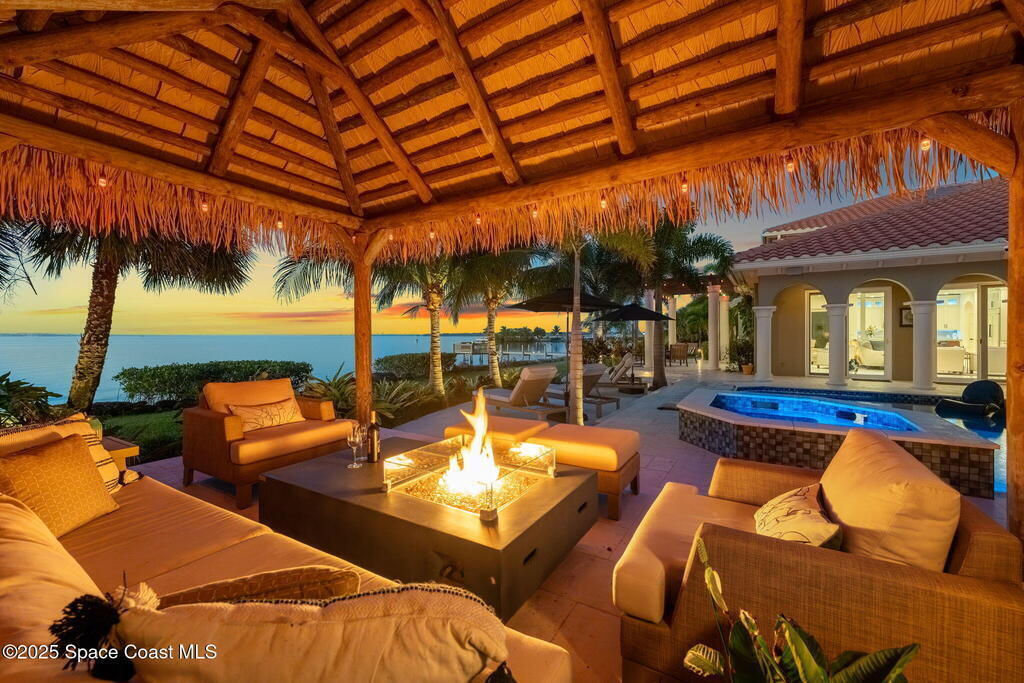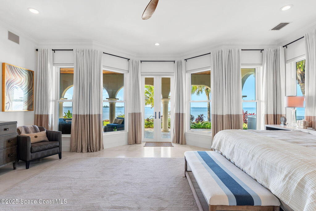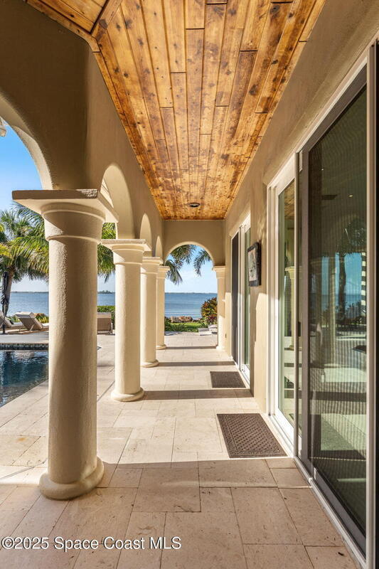 Peninsula Point. Tucked behind a private gated entrance serving just six residences, this exceptional waterfront estate occupies a rare peninsula setting offering direct Indian River frontage on one side and canal access on the other, an increasingly scarce combination on the Space Coast. With 425 feet of total waterfront, the property delivers unobstructed river views, protected docking, and true dual waterfront living with both sunrise and sunset perspectives.The concrete block home was fully reimagined between 2020 and 2022 and is completely turnkey, incorporating impact-rated windows and doors, modern systems, and refined finishes throughout. Thoughtfully oriented to maximize its surroundings, nearly every room captures sweeping water views and broad upriver sightlines, allowing the home to live as beautifully as it photographs.