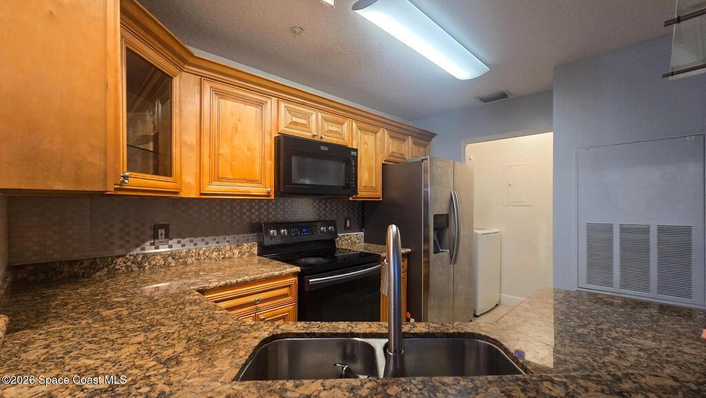 What you'll love about this condo is where it's situated in Cypress Cove, a resort style community in Suntree. The unit is just steps away from all the desired amenities, plus it's been recently updated. The kitchen and both baths have granite counter tops and designer cabinets, plus there are exhaust fans in both baths and additional insulation was added. Most of the appliances are fairly new: AC 2019, Stove 2022, Microwave 2018, Dishwasher 2022, Dryer 2023, the washer & dryer included. Both bedrooms have walk-in closets and there's a nice sized storage closet just outside the unit. The kitchen and both baths have granite countertops and designer cabinets, plus there are exhaust fans in both baths and additional insulation was added. Most appliances are fairly new; AC 2019, Stove 2022, Microwave2018, Dishwasher 2022 and Dryer 2023. Garages are available to rent. Property also for sale with Owner Financing, see MLS# 1058074