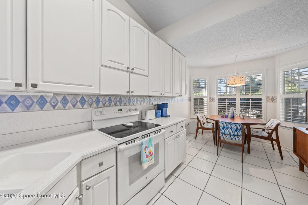 One-story living with no neighbors above! Welcome to this Lakeview, single-story condo featuring a private entry. Newer AC replaced 2/2024. The tiled foyer welcomes you in with soaring vaulted ceilings and serene water views throughout much of the home. The eat-in kitchen offers Corian countertops, plantation shutters, and a convenient breakfast bar. The spacious owner's suite includes access to a tiled, enclosed porch. Relax and enjoy Florida's natural wildlife from the Florida room overlooking the lake in the backyard. The second bedroom is generously sized and has a guest bath. Washer and dryer are included in the unit. Monthly fee covers internet, and TV cable. This is truly a must-see!