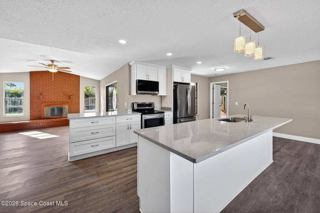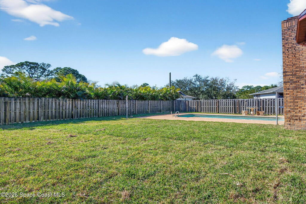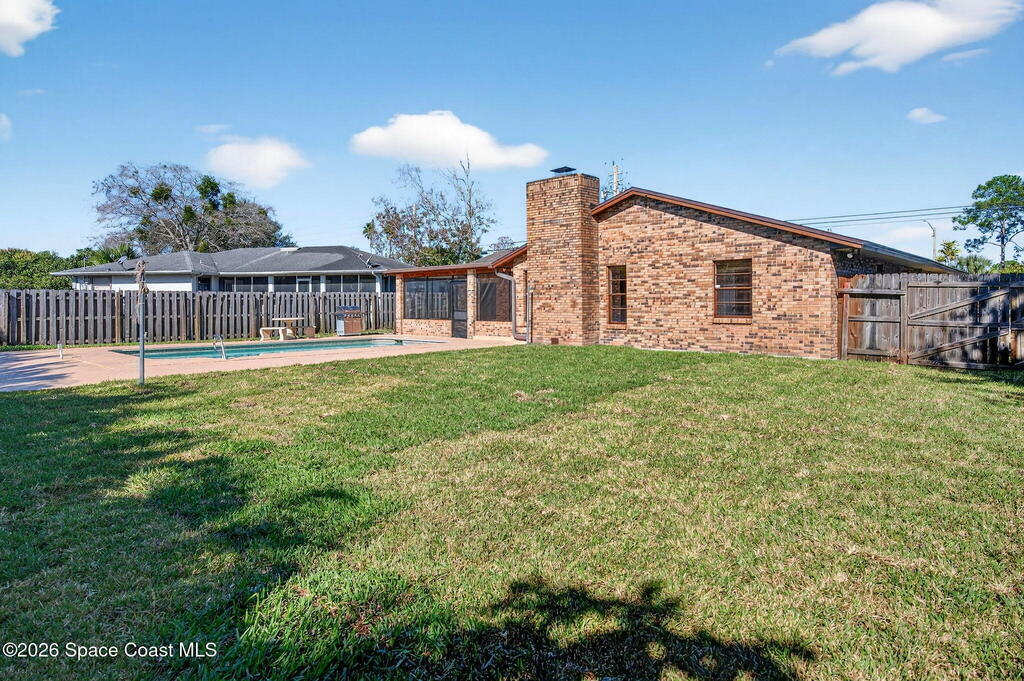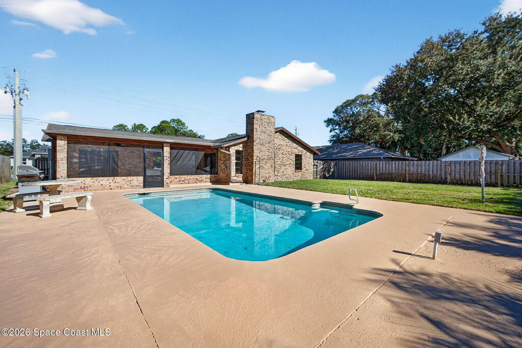 Welcome to your dream home in NW Palm Bay! This stunning pool home boasts 3 bedrooms, 2 bathrooms, and a 2 car garage, providing ample space for you and your family. The brick exterior adds charm and character to the home, while the new roof provides peace of mind for years to come. As you enter this home you notice the stainless steel appliances and quartz counter tops in this remodeled kitchen. There is a large painted brick fireplace in the family room, perfect for these cool evenings. Entertain guests in the screened-in patio overlooking the beautifully landscaped backyard with a in-ground pool, perfect for relaxing on hot summer days. Back inside you have a Primary bedroom with an on-suite bathroom and a walk in closet and a door leading to the patio. This is a split plan home with Primary bedroom on one side and guest bedrooms on other side. Both bathrooms have quartz countertops and tiled showers adding a touch of elegance to the bathrooms. There is a inside laundry room also.