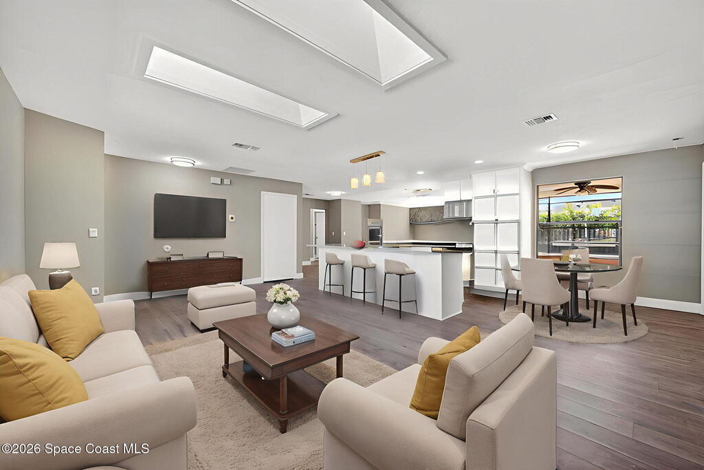 Breakfast Bar , Ceiling Fan(s) , Kitchen Island , Open Floorplan , Primary Bathroom - Shower No Tub , Skylight(s) , Split Bedrooms , Vaulted Ceiling(s)