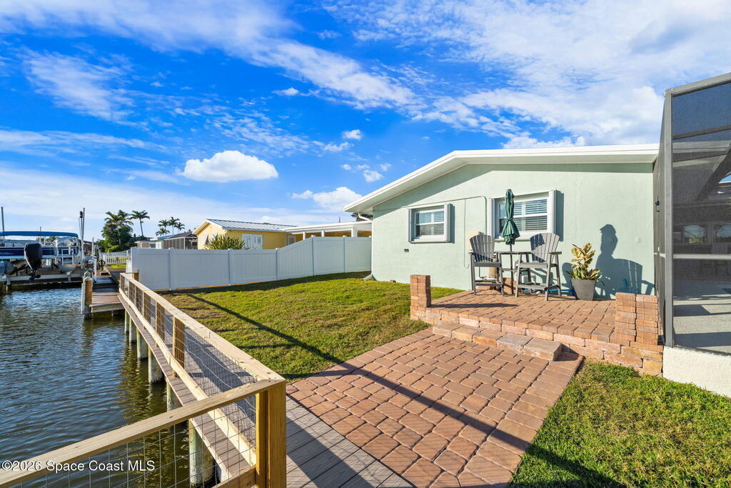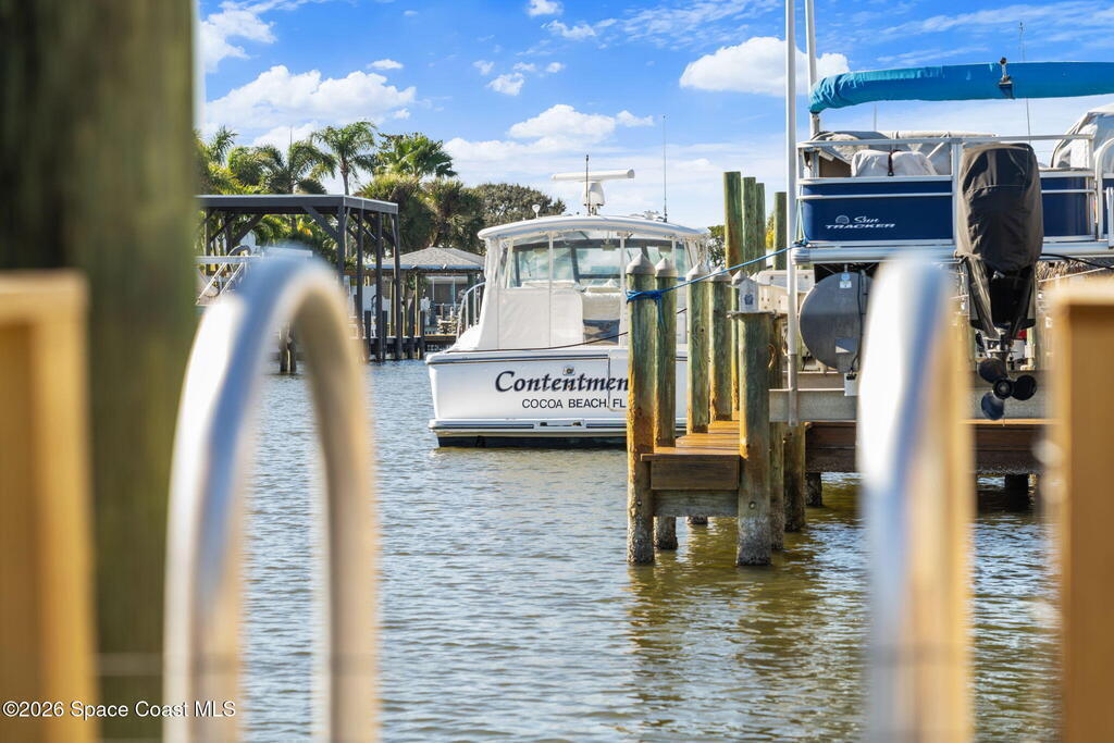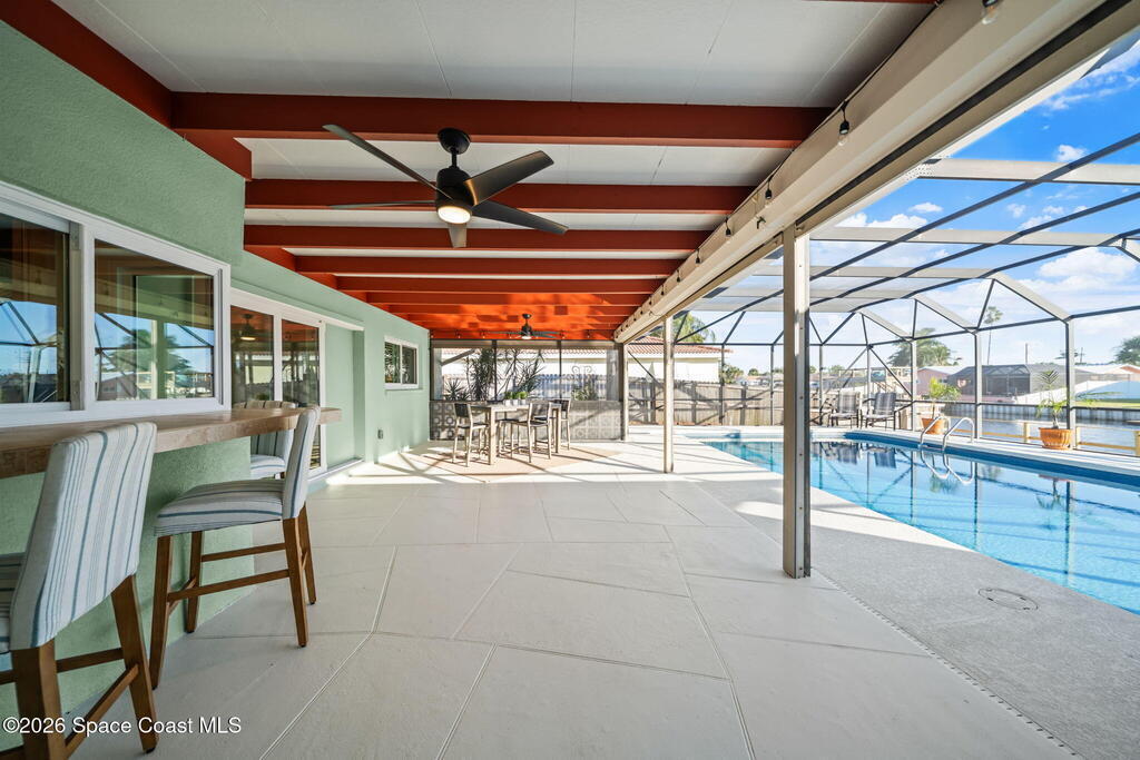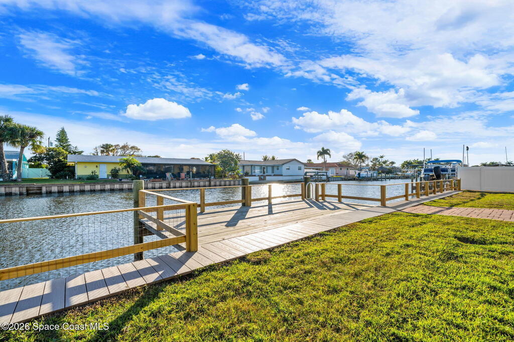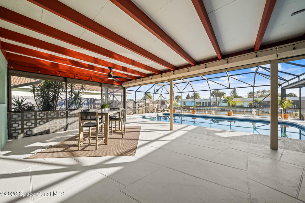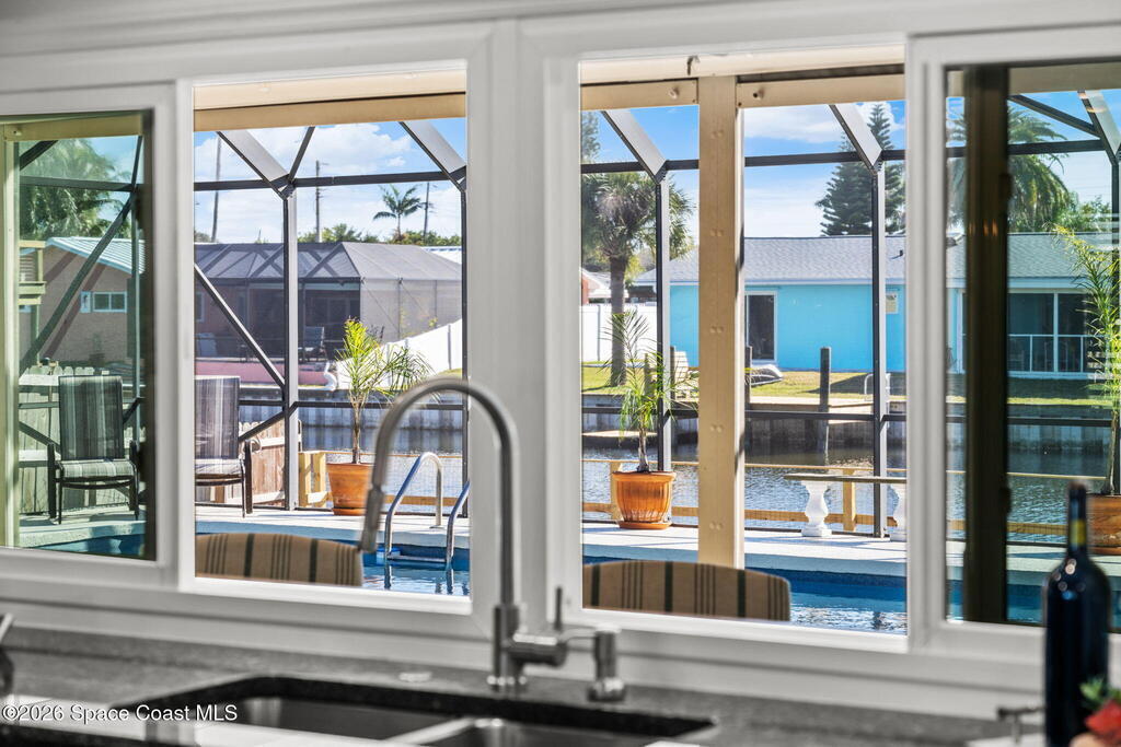 Exceptional canal front living in the heart of Cocoa Beach! This fully renovated waterfront home is bright, welcoming, and completely turnkey, boasting hundreds of thousands in recent improvements. Major upgrades include a 2022 Metal roof, 2022 HVAC system, 2022 tankless water heater, updated electrical, and replacement of all cast-iron plumbing under the home and to the street with PVC plumbing. Impact-rated windows, doors, and sliders throughout along with an impact-rated garage door.Designed for boaters and outdoor enthusiasts, the property features a brand new seawall, a newer dock with an new dock walkway, and a canal that is routinely dredged by the City. The outdoor space is designed for entertaining, featuring a re-surfaced pool and deck, a new screen enclosure, a covered back patio with a decorative wood ceiling and bar seating that opens seamlessly to the kitchen through pass-through windows.Additional upgrades include hurricane shutters, Kevlar hurricane screen