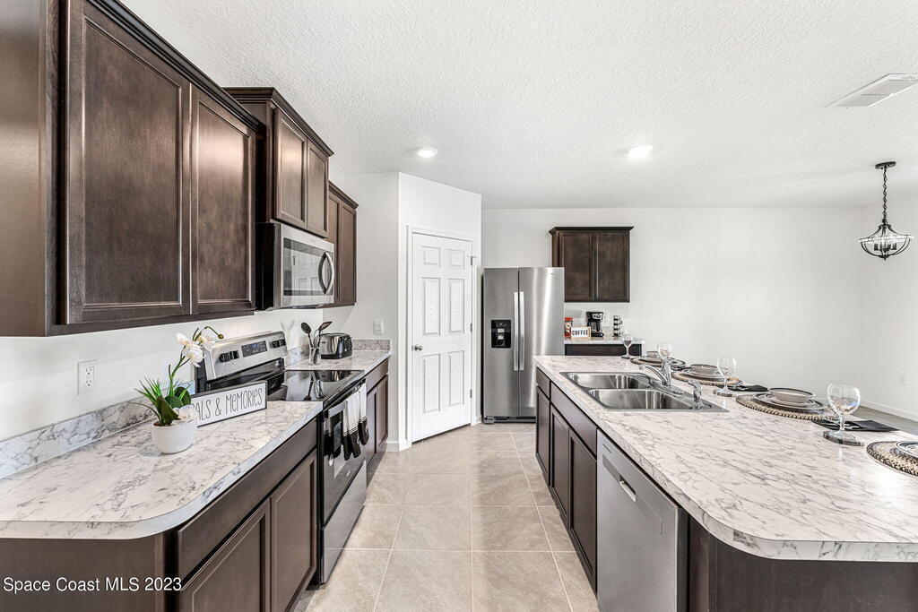 This beautiful newly built home is available for rent. Featuring 4 bedrooms, 2 full bathrooms, and a 2-car garage, this home offers plenty of space and flexibility. The home has tile throughout with carpet in the bedrooms. The kitchen is complete with stainless steel appliances, an expansive island, and a large pantry. Between the primary suite's oversized walk-in closet, an indoor laundry room, and a spacious backyard, there's plenty to love in this home.Located in the heart of Palm Bay, this home is close to everything, including nearby shopping, parks, and schools. Washer and dryer included.