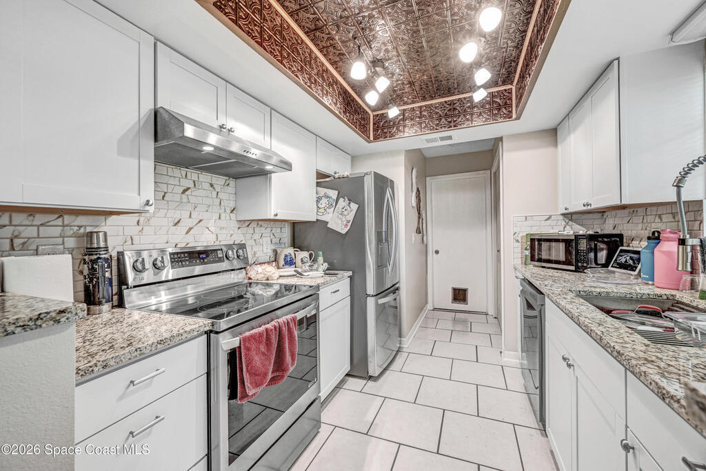 Come see this beautifully refreshed 3-bedroom, 2-bath home situated on a desirable corner lot. The home has been fully remodeled and features a brand-new kitchen with granite countertops, a stylish tile backsplash, and all-new stainless steel appliances -- including a smart stove with a built-in air fryer that can be controlled from anywhere. The living area is highlighted by a tray ceiling with a striking copper-look finish. Both bathrooms have been tastefully updated with subway tile and new vanities. Enjoy a large, fully fenced yard perfect for relaxing or play. No HOA! Ideally located just minutes from the beach, shopping, dining, and Orlando International Airport, with Orlando's world-famous attractions within an hour's drive.