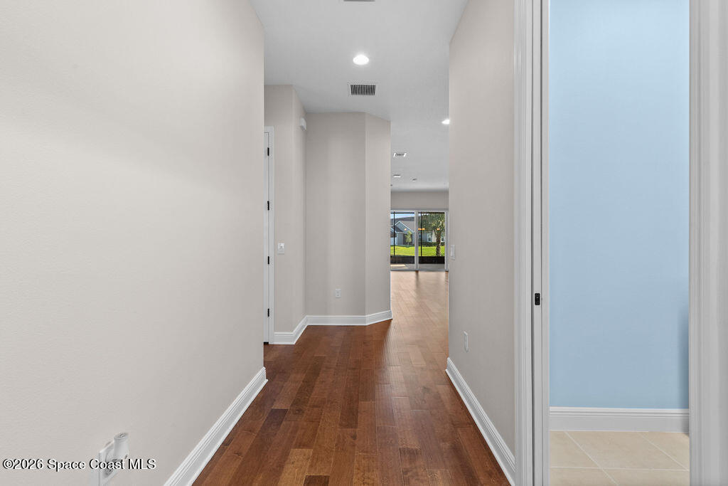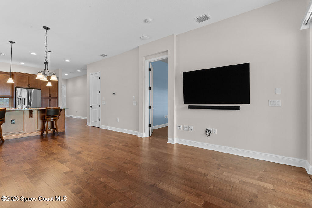 Welcome to 2818 Avalonia Drive, a home that truly stands apart in Viera West. After construction was complete, the owner thoughtfully invested in 47 additional upgrades, and you can feel the difference the moment you walk in. This 3-bedroom, 2-bath townhouse offers 1,481 sq ft of space that feels warm, polished, and intentionally designed for everyday living. Hardwood floors run throughout the living areas and bedrooms, creating a seamless, inviting flow. The open layout is bright and comfortable, enhanced by eight-foot interior doors, 5 1/4'' base molding, and relaxed Key West-style shutters that add personality without feeling overdone. The kitchen is both stylish and functional, featuring higher-end stainless steel appliances, soft-close cabinetry, and under-cabinet lighting that makes evenings feel calm and cozy. Thoughtful upgrades continue behind the scenes with pre-wiring for speakers, TVs, and security cameras, along with impact windows and an epoxy-coated garage floor.