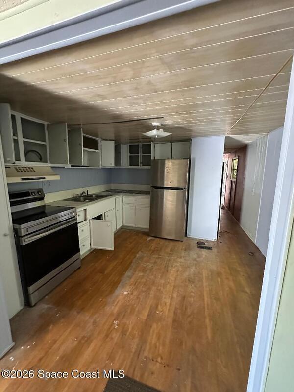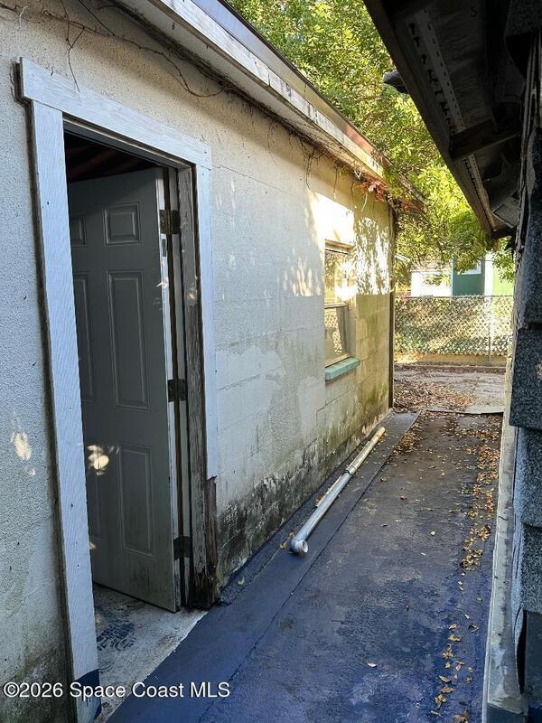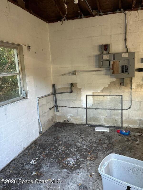 Handyman special--an opportunity to make it your own. This 4-bedroom, 2-bath modular home offers a flexible layout with a split floor plan, a spacious living room, and a step-down bonus room that adds extra versatility. The home includes newer appliances and provides a solid starting point for updates and customization. The property also features a detached 264-sq-ft concrete block building, plumbed for laundry and ideal for storage, a workshop, or future use. The existing layout allows for the possibility of combining rooms to create a larger primary suite while still maintaining ample guest space. Additional highlights include a fenced yard, poured concrete driveway for convenient parking, and a quiet cul-de-sac location in North Merritt Island.