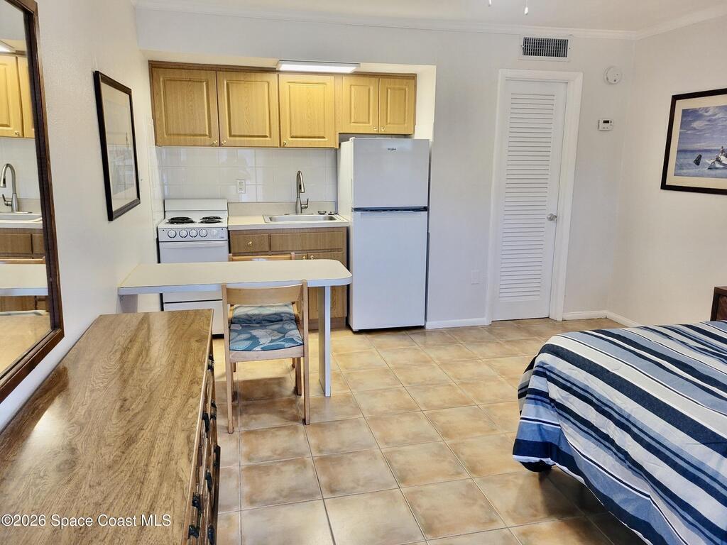 LOCATION, LOCATION, LOCATION. Short 1/2 block to the beach in Cape Canaveral. This delightful partially furnished STUDIO apartment has a full kitchen, all tile flooring, impact windows, refrigerator and range. The apartment complex features gorgeous tropical landscaping, a courtyard, coin operated washer and dryer and one assigned parking spot. NON-SMOKERS ONLY, NO SHORT TERM RENTALS, ONE VEHICLE ONLY . Owner will consider 1 cat with non-refundable deposit but NO DOGS. Rent includes water, sewer, trash, pest control and lawn care. Tenant responsible for electric, wireless and cable. (Owner REQUIRES excellent credit, strong rental history and verifiable income.) Located a very short walk to the ocean. Close to restaurants, shopping, and Port Canaveral. Easy access to SR 528, 45 minute drive to Orlando and the Airport.