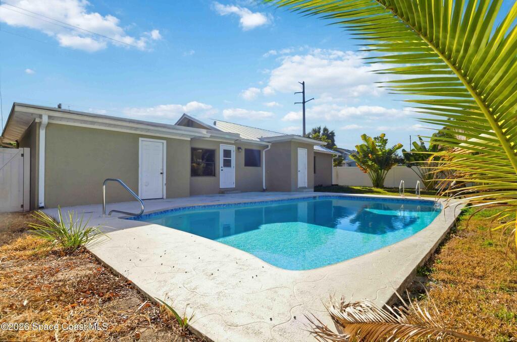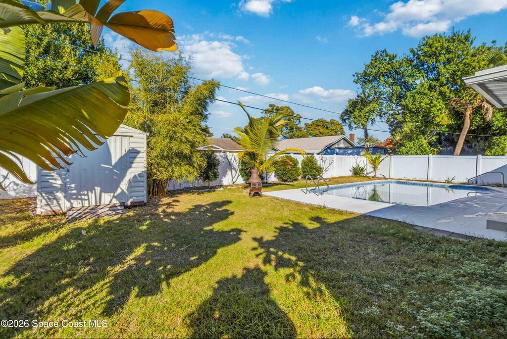 Can you believe this 2 bed 1 bath POOL home in the heart of Eau Gallie is only $315,000? Remodeled kitchen with concrete counter tops over looks the huge back yard with massive sized pool. New carpet in bedrooms. Newer metal roof in 2021, newer PVC privacy fencing in 2020, newer laminate flooring and so much more. One large main bedroom features 2 closets. Utility room with washer and dryer, and outdoor storage building. This location is amazing as you are minutes to the Eau Gallie Arts District, Beaches, Airport, and some of the best restaurants in Brevard County. This gem makes a perfect cozy home or a fantastic investment/rental. (Please check with the city of Melbourne for rules and regs on STR) Owner ''MAY'' consider holding a short term balloon note as first position and substantial money down. ONE YEAR AMERICAS PREFERRED HOME WARRANTY INCLUDED!