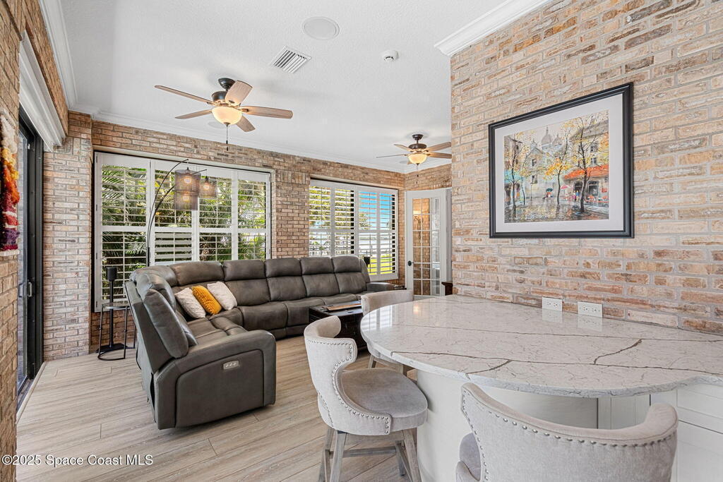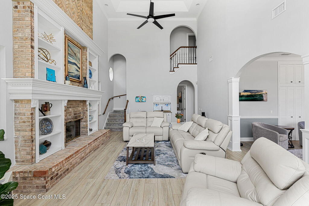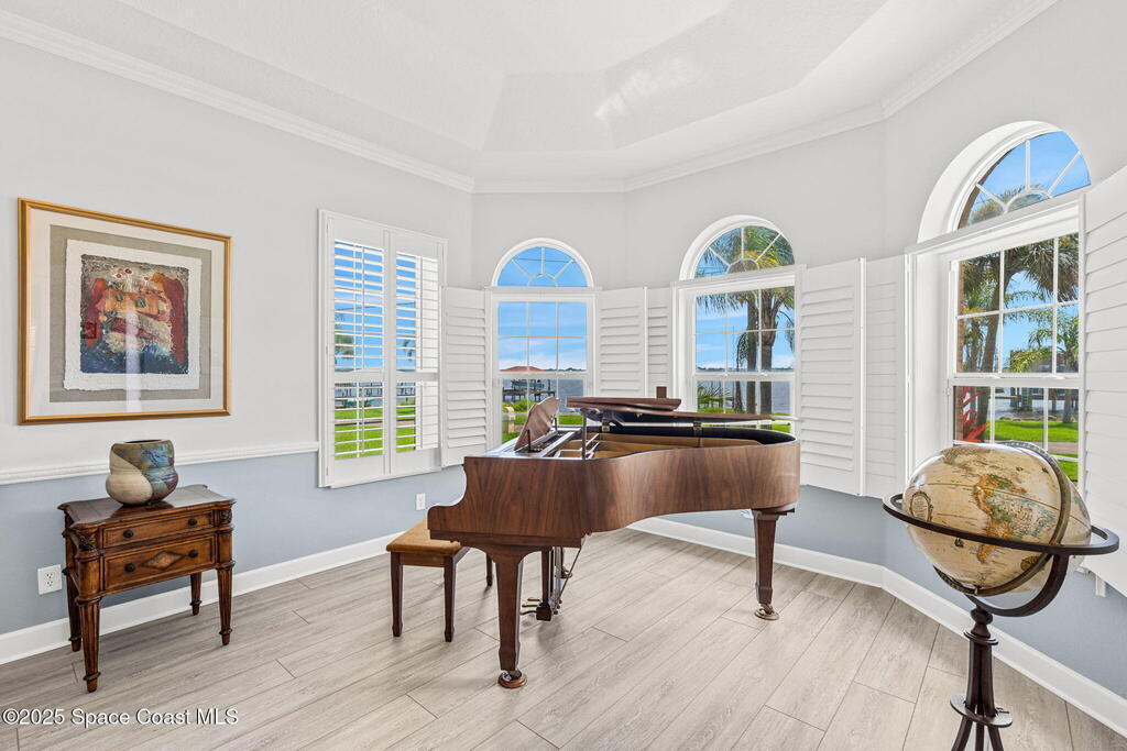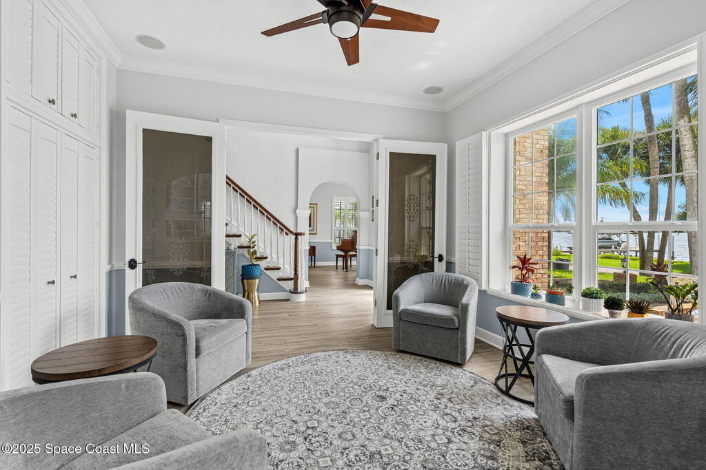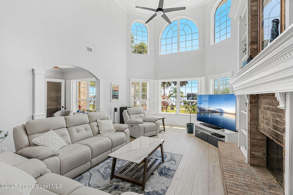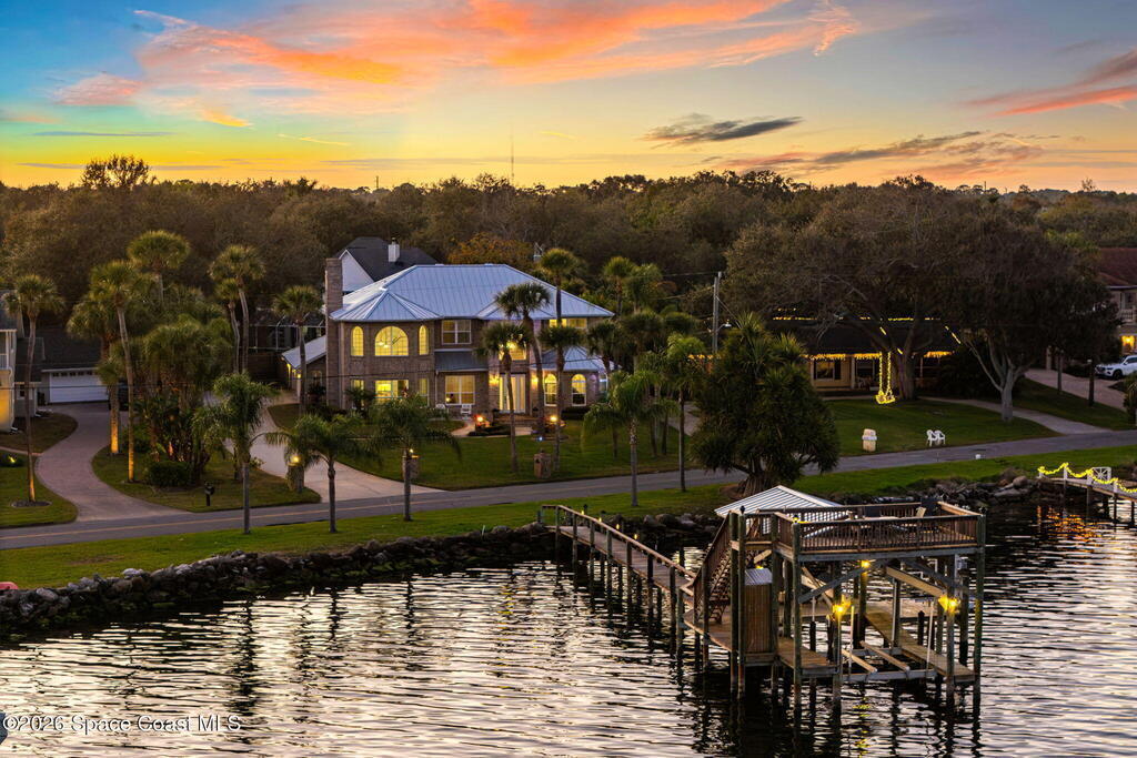 Wake up to endless river views, glowing sunrises, and rocket launches lighting up the sky. This exceptional riverfront home on iconic Rockledge Drive offers the kind of Florida lifestyle most people only dream about. Set on nearly half an acre with 104 feet of Indian River frontage, this property delivers privacy, space, and an unmatched connection to life on the water.From the moment you arrive, it's clear this home has been meticulously cared for. Inside, 3,820 square feet of light-filled living space unfolds with soaring 25-foot ceilings in the great room, multiple gathering spaces, and warm, timeless finishes throughout. Whether you're hosting holidays, quiet evenings by the fireplace, or entertaining guests, the layout flows beautifully while still offering room to retreat.