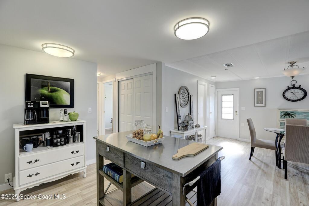 Coastal Sophistication with Stunning Lake Views! This beautifully updated home offers a perfect blend of elegance and comfort, highlighted by serene lake views from the living room and a seamless open floor plan. Expansive bay windows flood the space with natural light, while plank flooring throughout the main living areas adds a modern, cohesive touch. The inviting electric fireplace serves as a stylish focal point, creating a warm ambiance year-round. A sliding glass door leads to a fully enclosed, tiled porch--ideal for enjoying morning coffee or evening sunsets overlooking the lake. The kitchen and bathrooms feature updated cabinetry, offering both style and functionality. Additional highlights include a double carport, a newer roof, and A/C system for peace of mind.