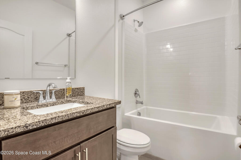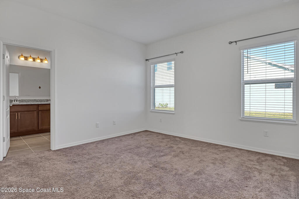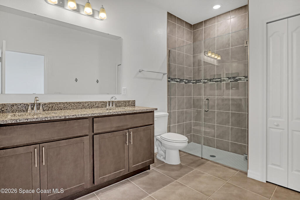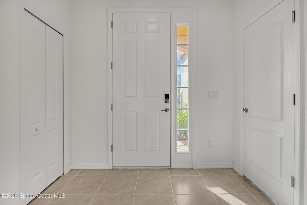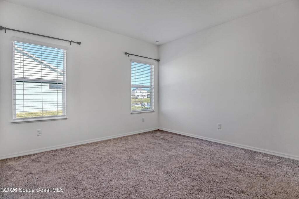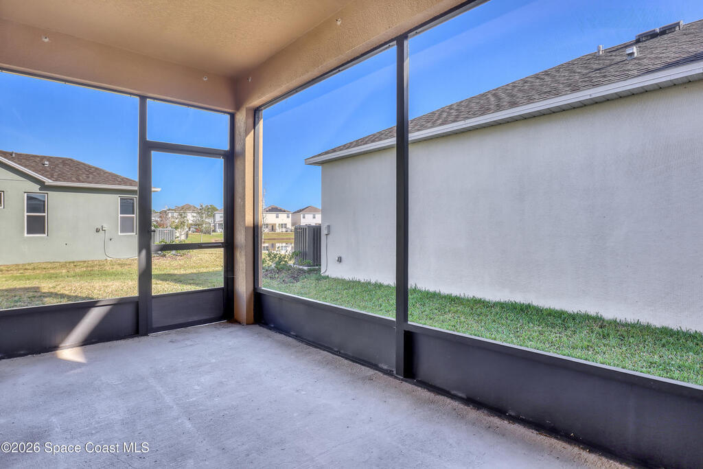 Stunning 3-bedroom, 2-bath concrete block residence built in 2023, offering serene lake views and located in the highly sought-after community of The Gardens at Waterstone. Beautifully maintained and designed for modern living, this home features gorgeous GRANITE countertops and an oversized ISLAND--perfect for culinary prep, entertaining, and everyday enjoyment. All upgraded cabinets, hardware, blinds, and STAINLESS-STEEL kitchen appliances which convey with the purchase, along with the WASHER and DRYER.The open-concept floor plan offers SPLIT bedrooms for added privacy. The lovely primary suite is a true retreat, complete with a walk-in closet and a double-vanity en-suite featuring a stunning walk-in shower. Two comfortable guest bedrooms provide flexibility for family, visitors, or a home office, while the guest bathroom includes a spacious tub and tasteful finishes. Have peace of mind with hurricane shutters and a complete irrigation system.Step outside to the screened-in