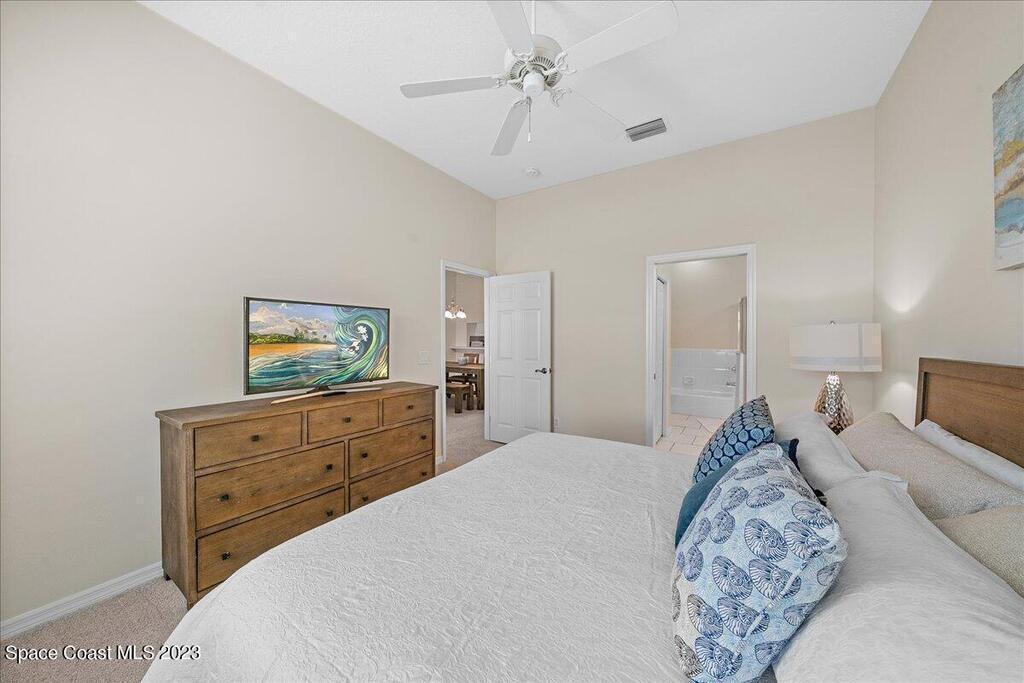 Live along the serene stretch of Minutemen Causeway in this modern decor two story townhouse. Open dining and living room look onto the screened in porch with views of the golf course. Two Master suites with King size beds one upstairs with an open balcony to watch the sunsets, other Master downstairs with large bath and closet. Third bedroom has bunk beds with great natural light. Eat in kitchen with breakfast nook has everything you need. Two car garage, large inside laundry room. The neighborhoods Cocoa Beach Country Club is right around the corner with a public 27 hole golf course, an Olympic size pool, tennis courts, driving range and restaurant! Renters insurance is required.