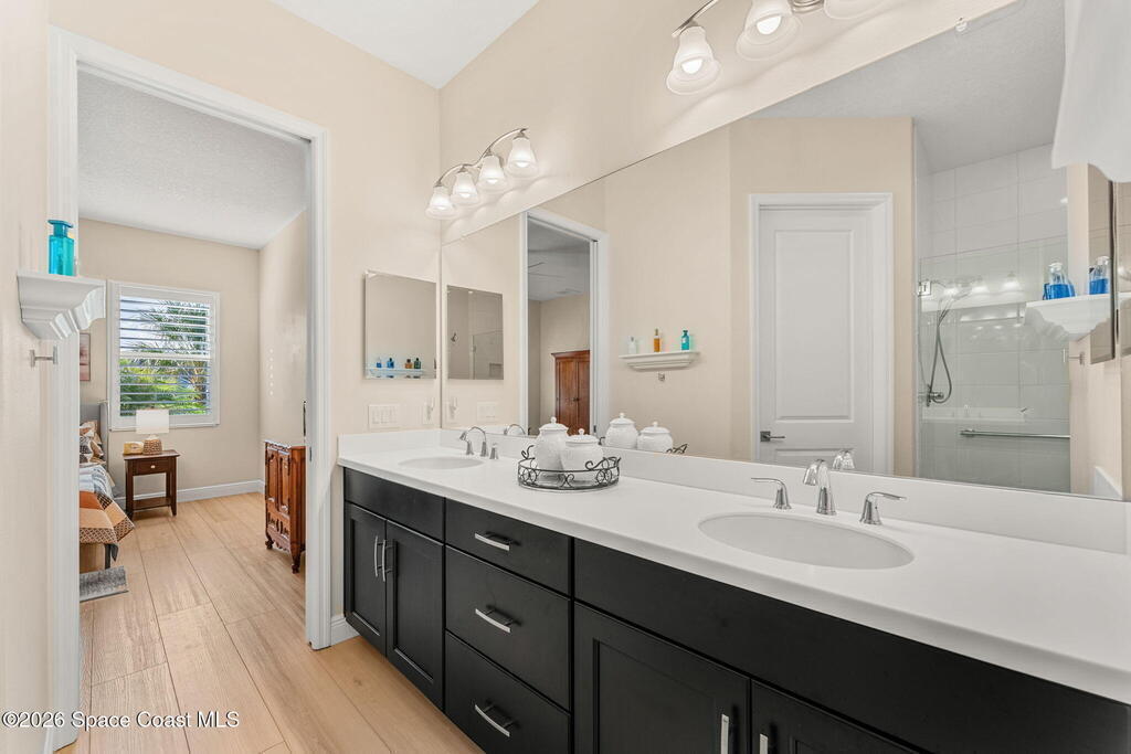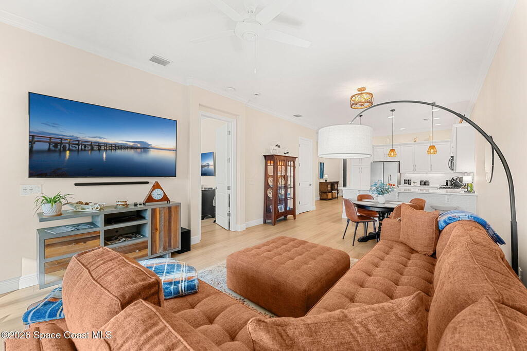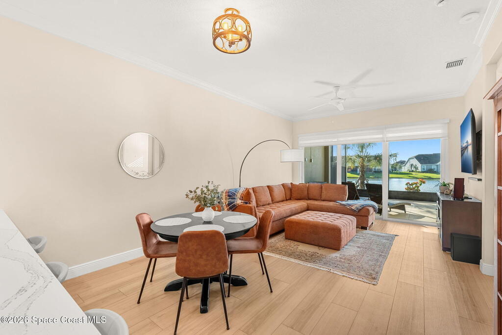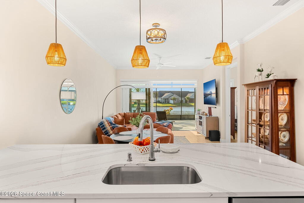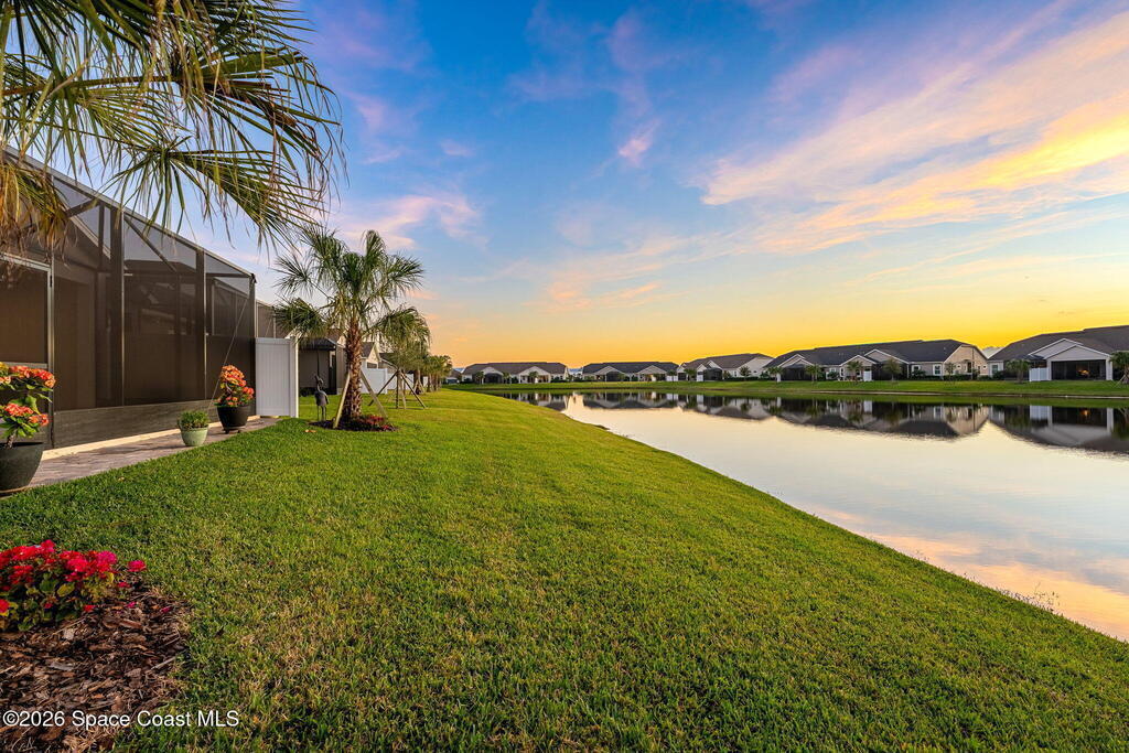If you've been dreaming of the Viera lifestyle without the typical Viera price tag, this is the one. Built in 2024 and thoughtfully upgraded from top to bottom, this 3 bedroom, 2 bath home offers the ease of townhouse living with the feel of a custom residence. From the moment you step inside, you'll notice the difference. Luxury vinyl plank flooring, upgraded cabinetry, premium countertops, designer tile details and custom touches throughout create a space that feels polished, comfortable and completely move in ready. The owners have gone beyond the builder basics with a whole home water softener, custom closets, window treatments, upgraded fixtures and a beautifully finished primary bath with a frameless glass shower. (See upgrade list attached) Step outside and enjoy peaceful pond views from the screened lanai, unwind on the extended paver patio, and take advantage of the built in natural gas grill connection with additional paver space designed for easy outdoor entertaining.