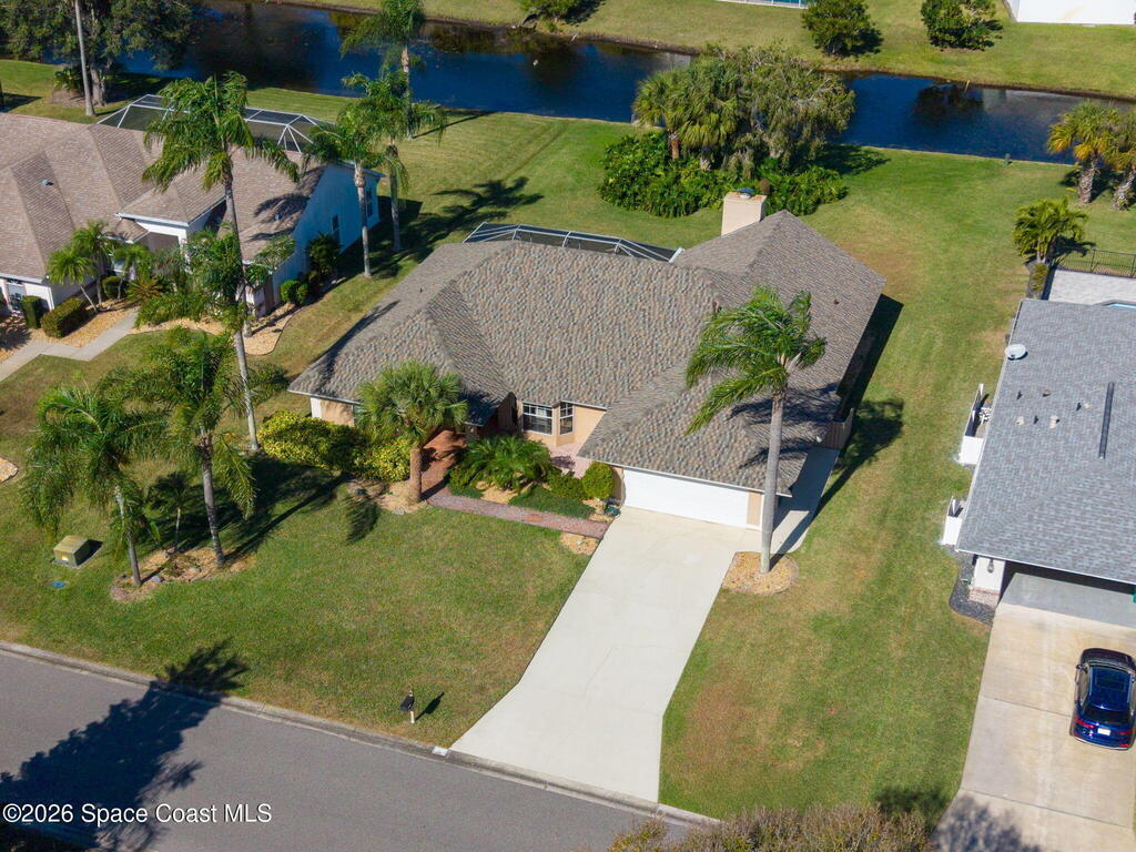 Discover this meticulous 3-bedroom, 2-bathroom ''hidden gem'' on a .28-acre waterfront double lot in Spanish Wells. This energy-efficient home features a brand-new roof (2025), and a fresh interior. The flexible open floorplan includes a spacious family room and kitchen with stainless steel appliances, all overlooking a serene lake and protected preserve. The primary suite offers two large closets, attached office and the garage easily fits two cars. Can be purchased furnished or unfurnished.Perfectly located near top-rated schools, Suntree Country Club, and Viera's best shopping and dining, this home offers the ultimate Florida lifestyle. Don't miss your chance to own this slice of paradise in a charming community of custom homes.