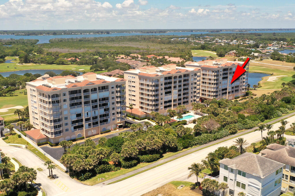 Step into luxury in this stunning fourth floor exquisite condominium located at Ocean Dunes in Aquarina. The elevator opens right into your unit and you will be impressed as you enter w/ the incredible ocean views from the wall of glass sliders that open to your private balcony. Travertine flooring throughout. Granite and S/S chef's kitchen opens to the spacious great room offering many opportunities for entertaining. Breakfast bar area has room for stools. The dining room is elegant and situated right off of the kitchen. Spacious primary bedroom has his and her customized closets. Elegant large master bath has garden tub, double vanity and separate shower. Each bedroom has its own bath + walk in closet. Bonus area perfect for office. The back lanai is spacious and offers golf course views w/ spectacular sunsets. Community gym and access to tennis courts. Beach clubhouse, river pier/boat launch. Community heated pool has fire pit and grill and is located just steps away from condo.