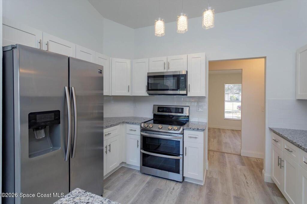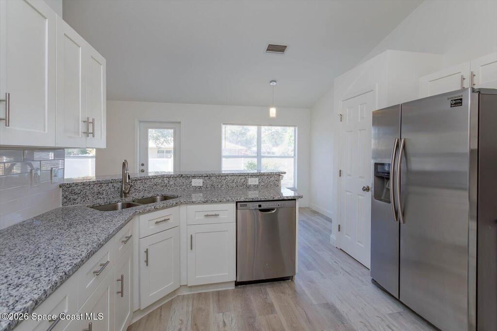 Discover your dream home at 426 Ash St, Sebastian! This freshly renovated 3-bedroom, 2-bathroom property with a 2-car garage has a brand new roof, HVAC and garage door. Inside, you'll find vinyl flooring throughout, a BRAND-NEW KITCHEN WITH GRANITE COUNTERTOPS, and BRAND-NEW BATHROOMS that exude contemporary charm. The home also features a convenient laundry room and a beautiful, spacious backyard, perfect for outdoor enjoyment. Freshly painted and move-in ready, this home is a must-see! Home comes with a 1 year Choice Home Warranty. Choice Plan covers HVAC, electric, plumbing and appliances! See brochure in docs for details. This property qualifies for a mortgage rate buydown of up to 3%!