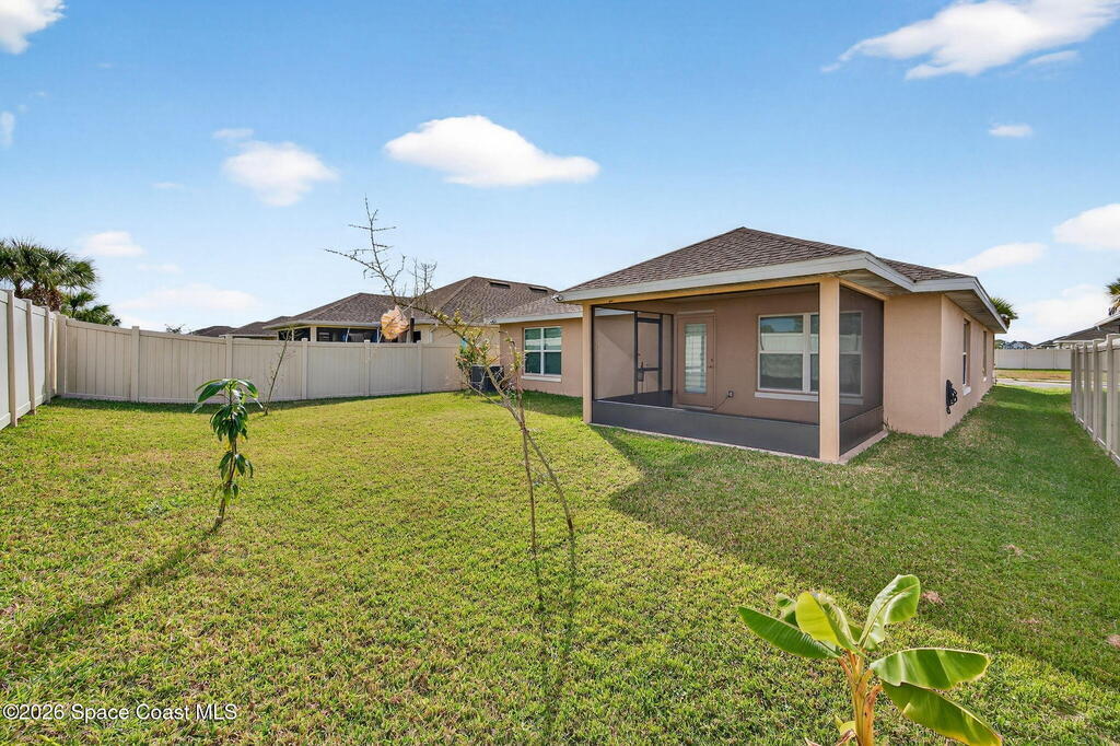 Your dream home awaits in this well‑maintained 3‑bedroom, 2‑bath residence located in a quiet Palm Bay neighborhood. The home features an open living and dining area, a bright kitchen with ample cabinetry, and a spacious primary suite with a private bathroom. Laminate flooring runs throughout the main living spaces, offering durability and easy maintenance.A covered lanai extends your living space outdoors, providing the perfect spot for relaxing or entertaining. The large backyard offers plenty of room for activities, pets, or future improvements. Concrete block construction and an attached garage add long‑term value and convenience. Community Features-Community poolCaban, well‑maintained common areas, conveniently located near shopping, dining, schools, parks, and major roadways including Malabar Rd and I‑95. A new Publix and additional shopping outlets have recently opened nearby. Short drive to Melbourne, local beaches, and major Space Coast employers.