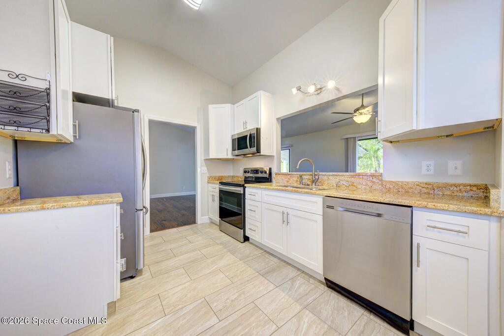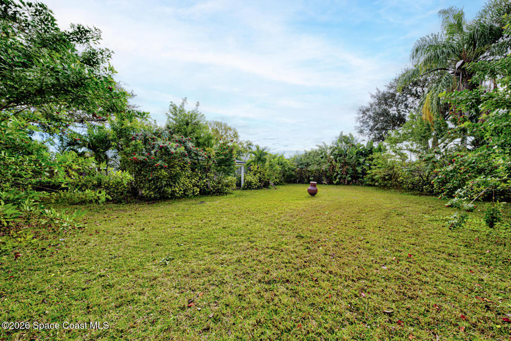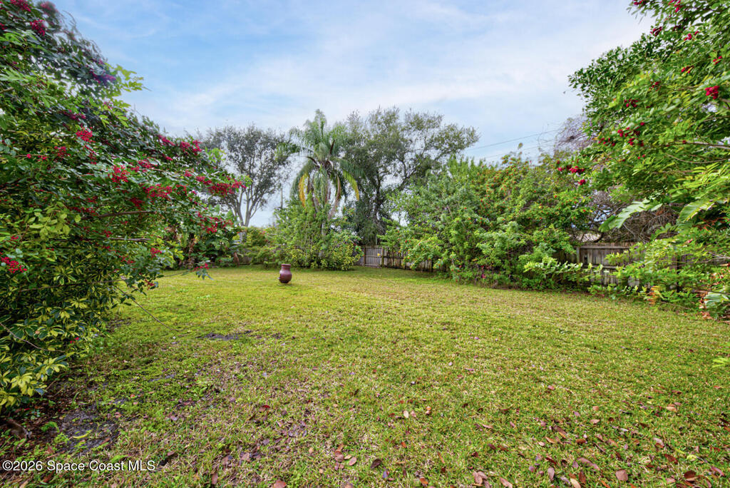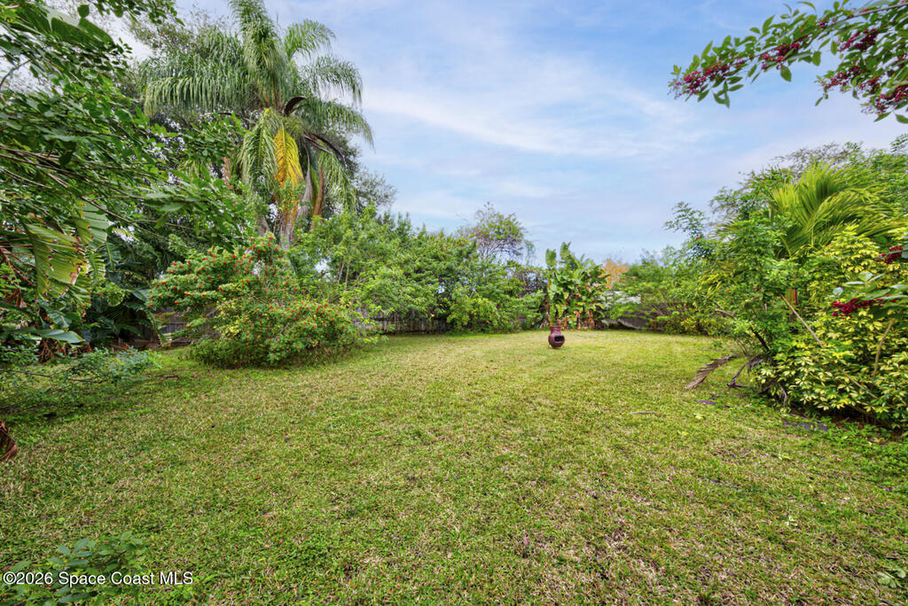 Updated Spaciously Designed 3 Bedroom 2 bath 2 Car Garage on .24 acres located in North Titusville. This home has much to offer with a large updated kitchen w/ bright white custom cabinetry w/ granite counter tops (plenty of cabinets and counter space), bay window & pass through/breakfast bar to dining room, lots of natural lighting, living room w/ vaulted ceiling, dining room, laminate & tile flooring through (No Carpet), laundry room in garage, primary suite has walk-in tiled shower, large walk in closet w/ custom shelving, second bathroom has tub/shower combo. Also, large back porch w/pavers & 1/2 covered and 1/2 open, completely fenced in large back yard. Mature landscaping. Roof replaced in 2024, HVAC replaced in 2024. There is NO HOA and plenty of room to park your boat, trailer, RV and more. This home is worth looking at.
