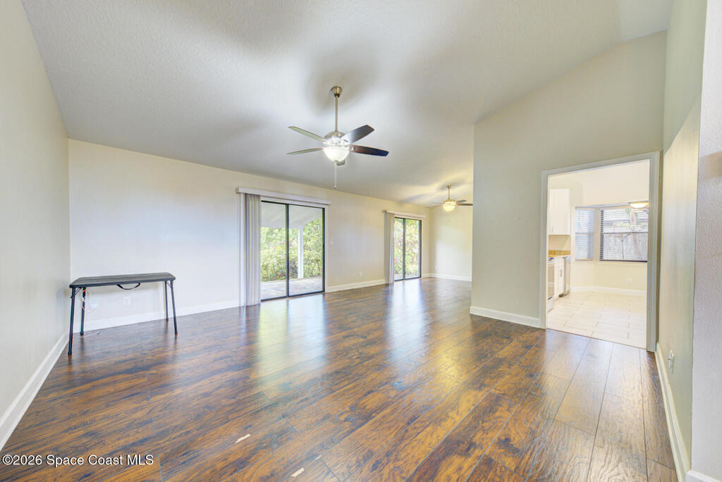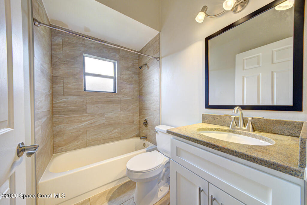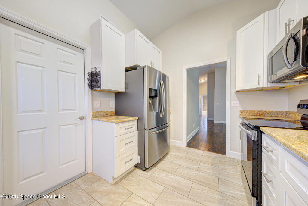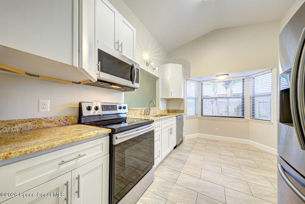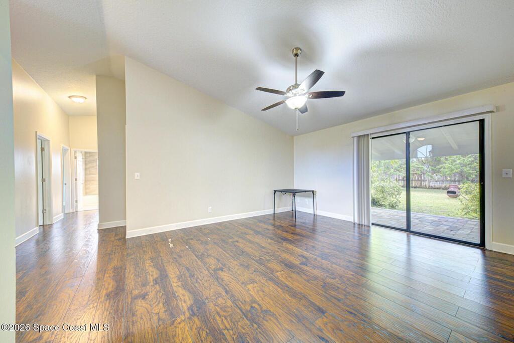 Updated Spaciously Designed 3 Bedroom 2 bath 2 Car Garage on .24 acres located in North Titusville. This home has much to offer with a large updated kitchen w/ bright white custom cabinetry w/ granite counter tops (plenty of cabinets and counter space), bay window & pass through/breakfast bar to dining room, lots of natural lighting, living room w/ vaulted ceiling, dining room, laminate & tile flooring through (No Carpet), laundry room in garage, primary suite has walk-in tiled shower, large walk in closet w/ custom shelving, second bathroom has tub/shower combo. Also, large back porch w/pavers & 1/2 covered and 1/2 open, completely fenced in large back yard. Mature landscaping. Roof replaced in 2024, HVAC replaced in 2024. There is NO HOA and plenty of room to park your boat, trailer, RV and more. This home is worth looking at.