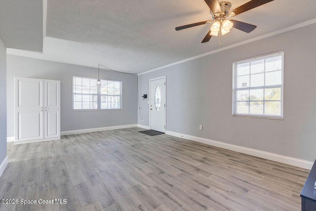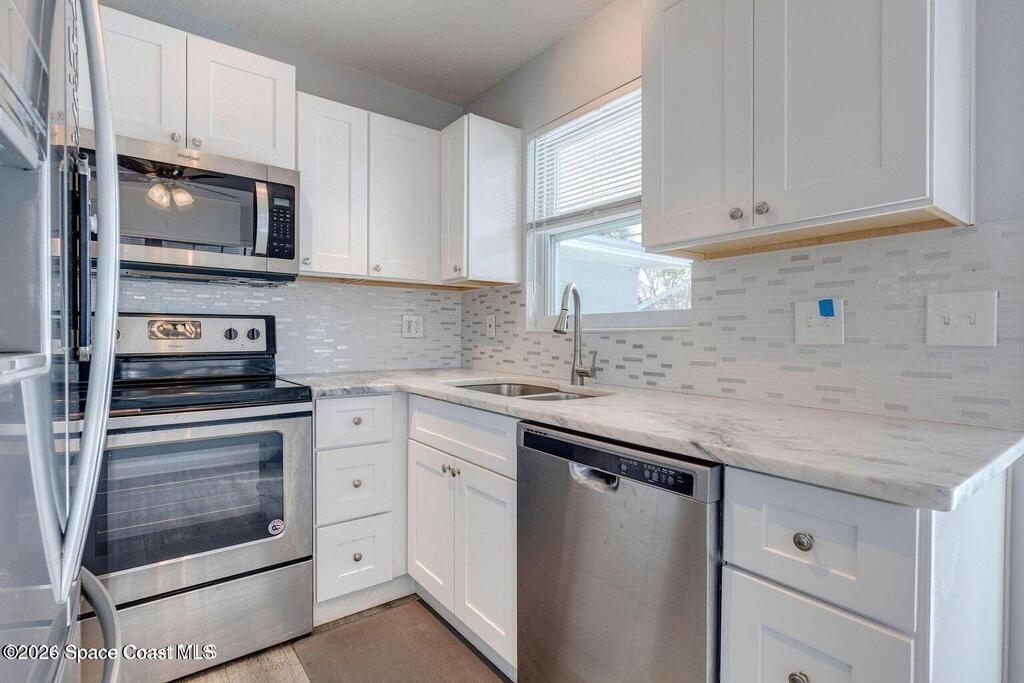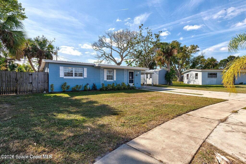 Recently remodeled 2-bedroom, 2-bath pool home ideally located in the heart of Port St. John, just minutes from the Indian River. Enjoy the rare opportunity to watch rocket launches right from the comfort of your front porch. This charming home boasts numerous upgrades, including a brand-new kitchen featuring solid soft-close cabinetry, granite countertops, a tiled backsplash, and energy-efficient stainless-steel appliances.The plumbing has been previously updated, eliminating cast iron sewer pipes for added peace of mind. Major systems including the A/C, roof, and hot water heater are approximately five years old. Beautiful wood-look tile flooring runs throughout the home, and both bathrooms have been tastefully updated. Additional recent improvements include updated windows, doors, ceiling fans, and light fixtures. Detached shed for your storage needs. Room sizes are approximate and should be verified by buyer. Don't miss this exceptional opportunity!