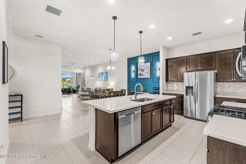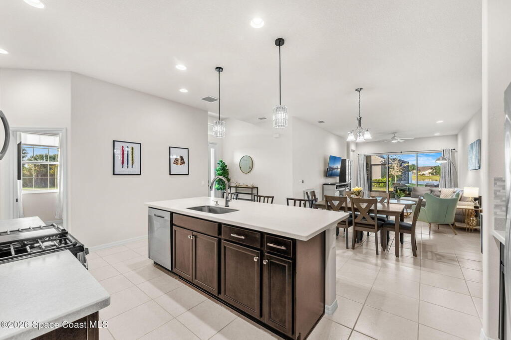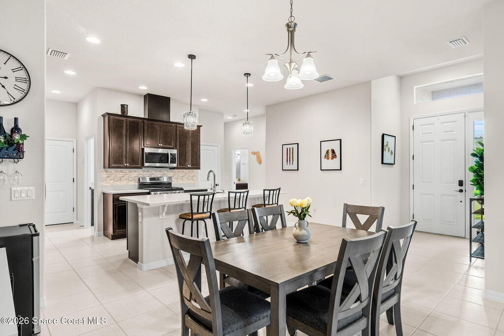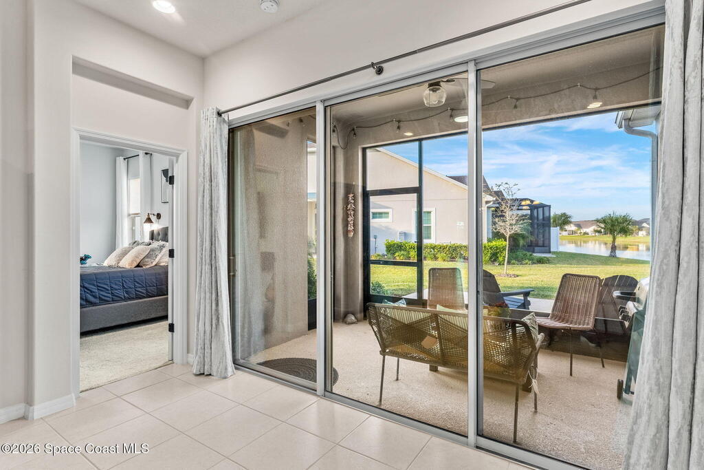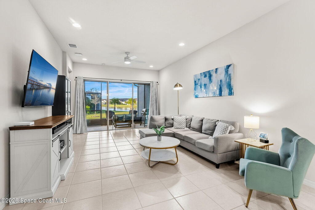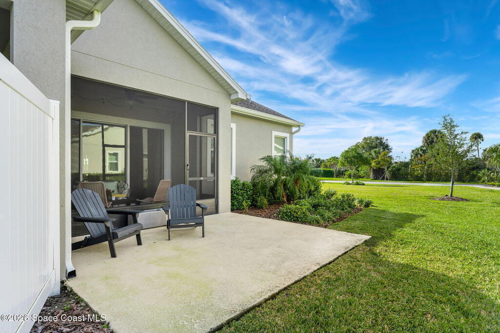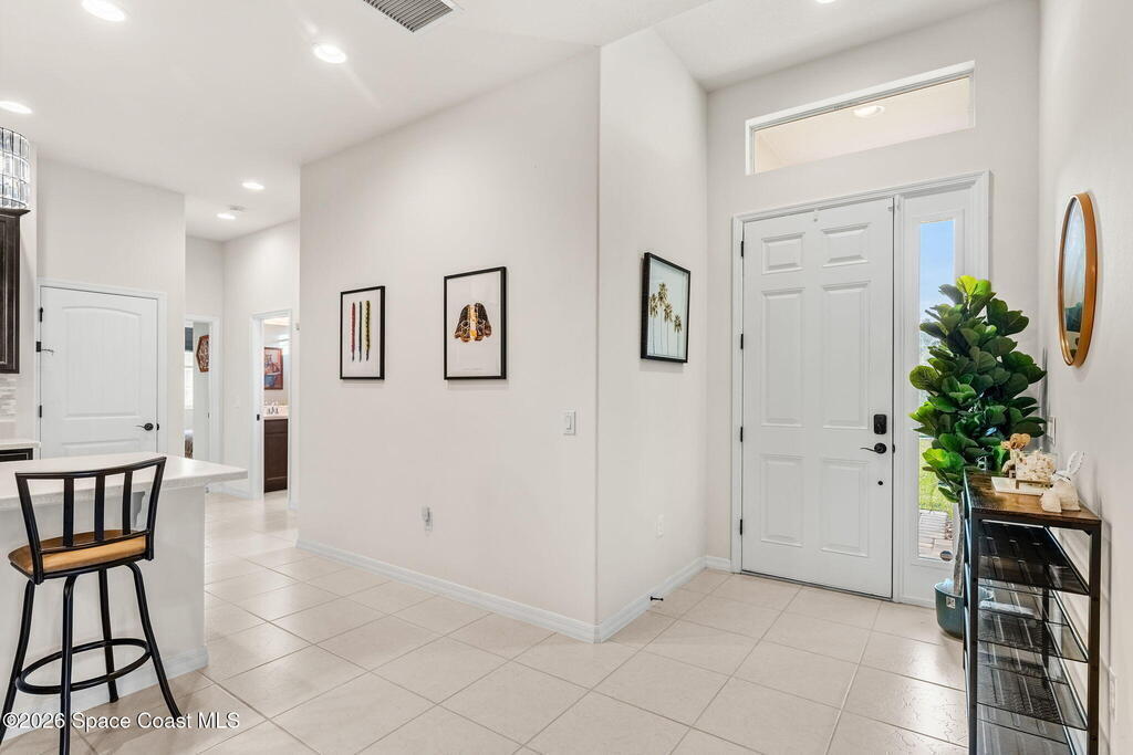 Live the ultimate carefree lifestyle in Viera, Forida in this stylish end-unit, single-story townhome on one of THE BEST LOTS in Avalonia, a rare .21-ACRE Lot! Enjoy privacy with side green space and preserve views across the street. Built in 2023 w/block construction, all windows and the front door are impact-rated. This Monterey II floor plan has 3 bedrooms, 2 baths, 2-car garage, enhanced with beautiful upgrades: 18'' tile floors, wood cabinetry, quartz countertops, a large island w/pendant lighting, stainless steel appliances, and a custom accent wall. Spacious primary suite features a huge walk-in closet w/custom organizers, dual-sink vanity, and tiled shower. Screened porch overlooks the lake. HOA covers exterior maintenance, roof replacement, lawn care. Enjoy Addison Village Club amenities: pools, basketball, tennis, pickleball- just a bike ride away. Close to shopping, dining, top schools. Short drive to the Beach (20 min), Northrop Grumman, L3Harris, KSC, Blue Origin and more